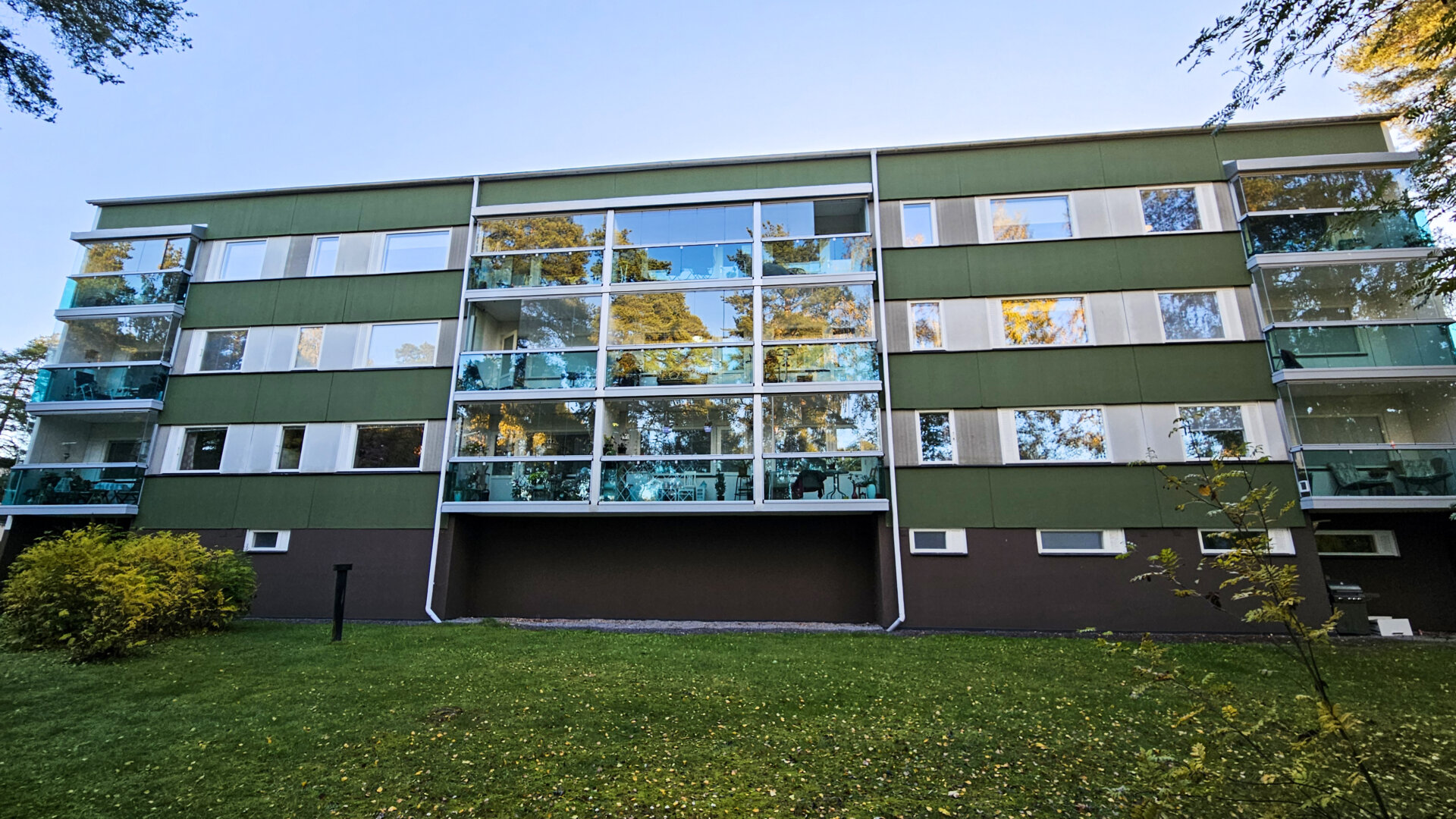 2021 Parvekejulkisivusaneeraus, kaikki parvekkeet lasitettu, koko talo maalattu