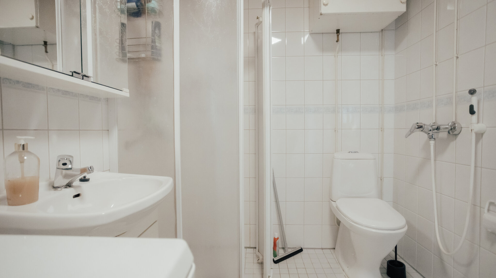 - Varusteet: Pesukoneliitäntä, wc-istuin, suihku, peilikaappi, peili