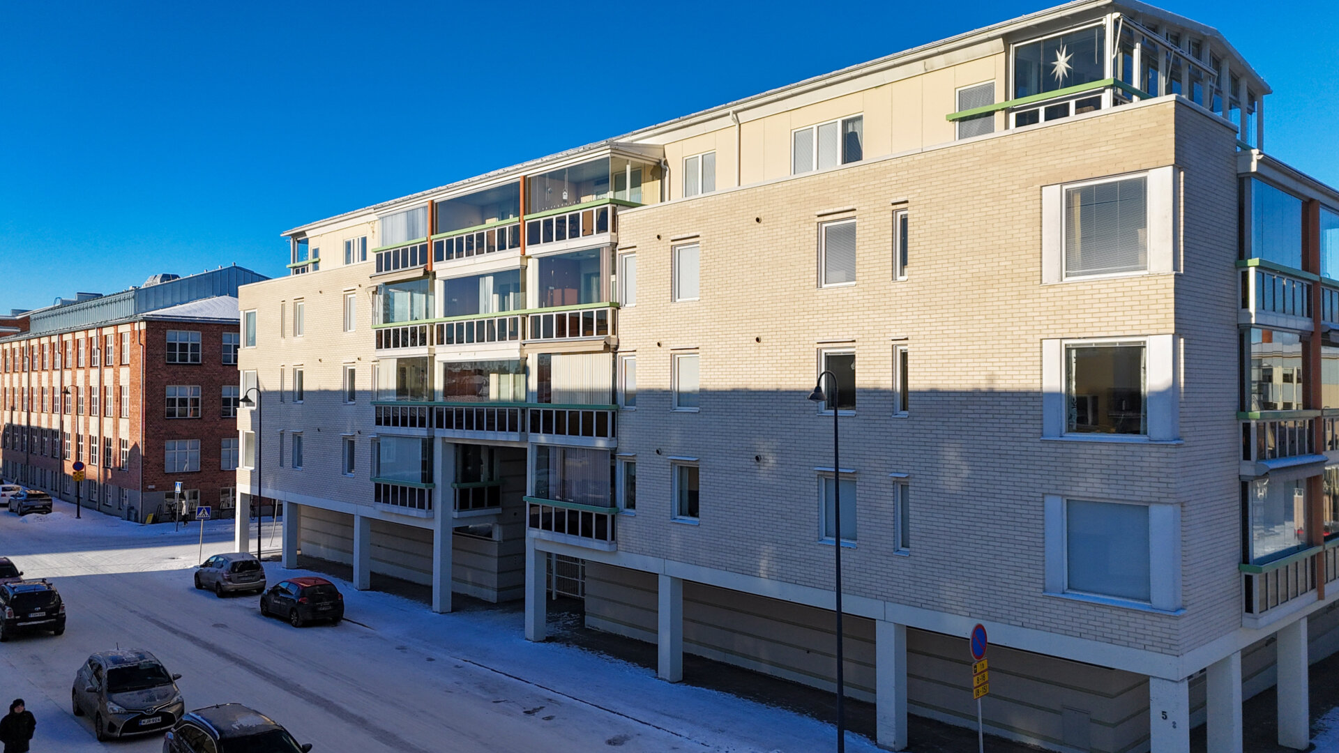 Tyylikkäät pinnat, suuret ikkunat ja etelään suuntautuva lasitettu parveke. Oma sauna, avoin pohjaratkaisu ja keskeinen sijainti vuonna 1998 rakennetussa siistissä kerrostalossa.