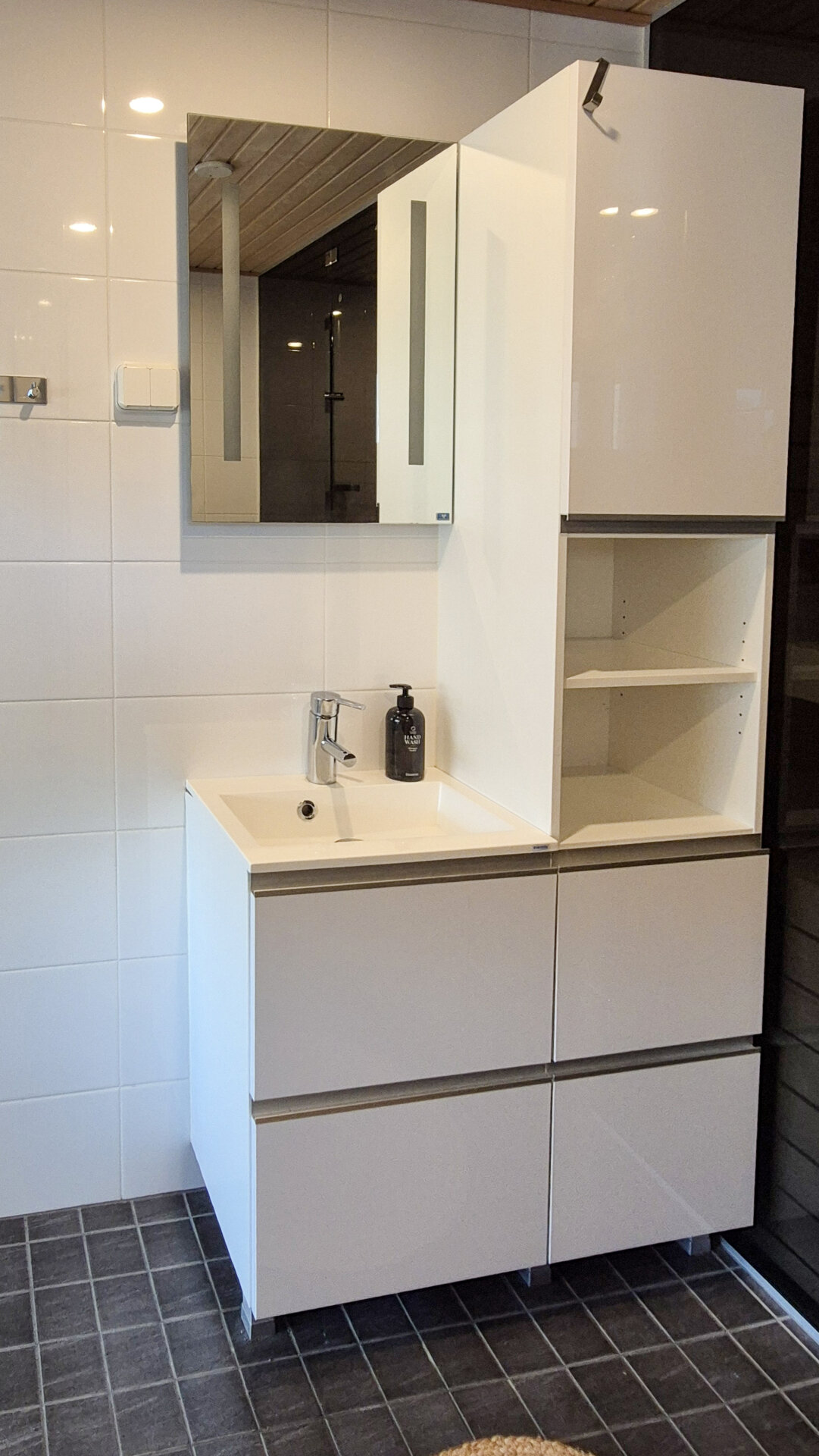 • Varusteet: Lattialämmitys, wc-istuin, suihku, peili, kylpyhuonekaapisto