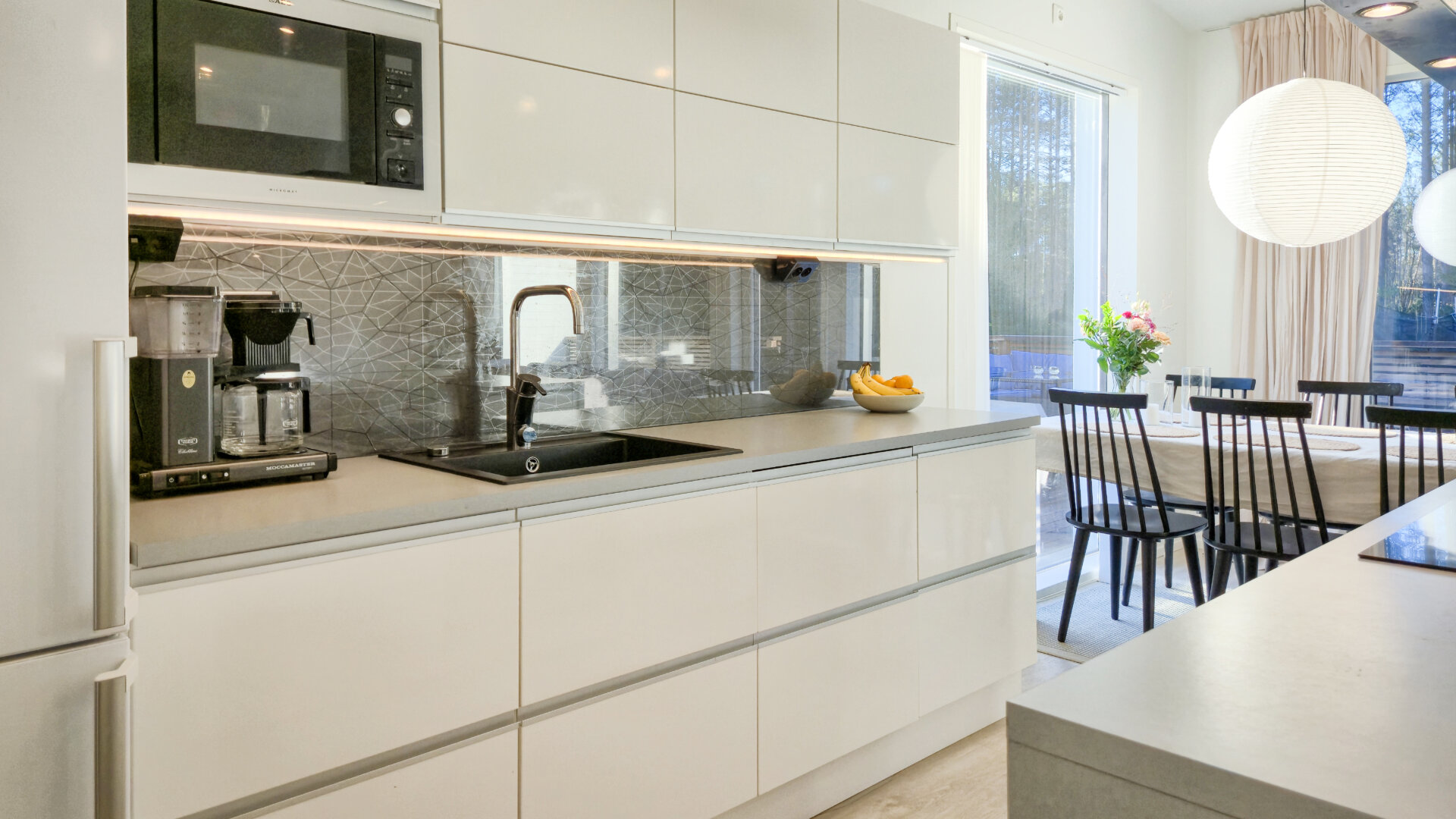 • Varusteet: Jääkaappi/pakastin, Liesituuletin, mikroaaltouuni, astianpesukone, irralliset saarekkeet, kiinteät valaisimet