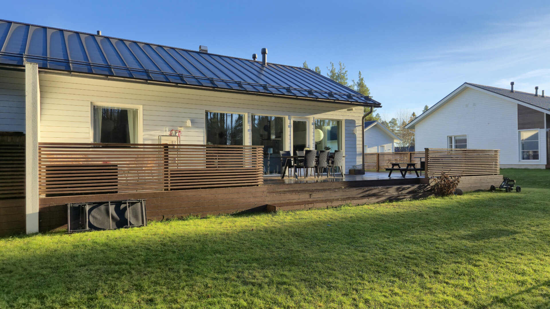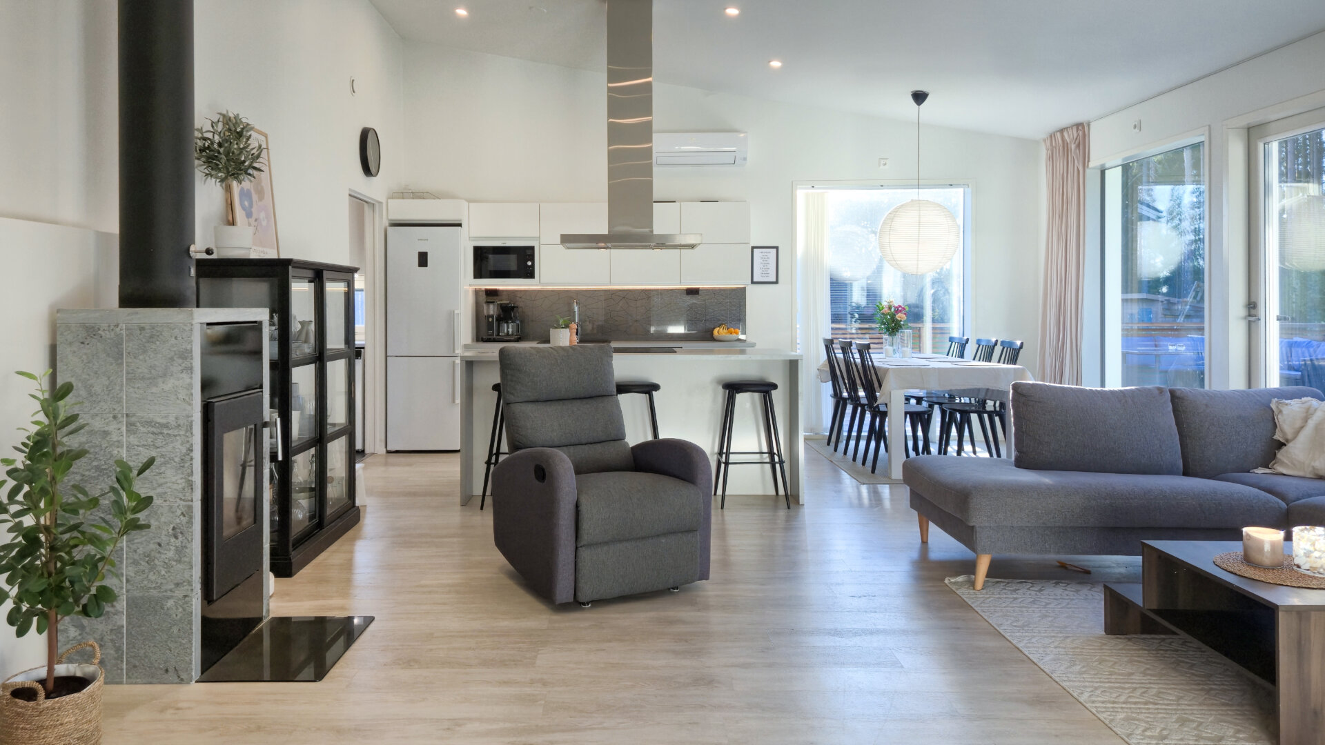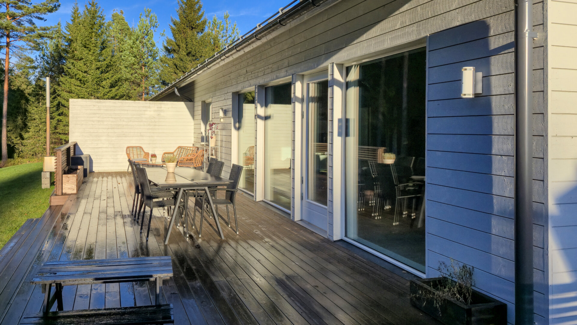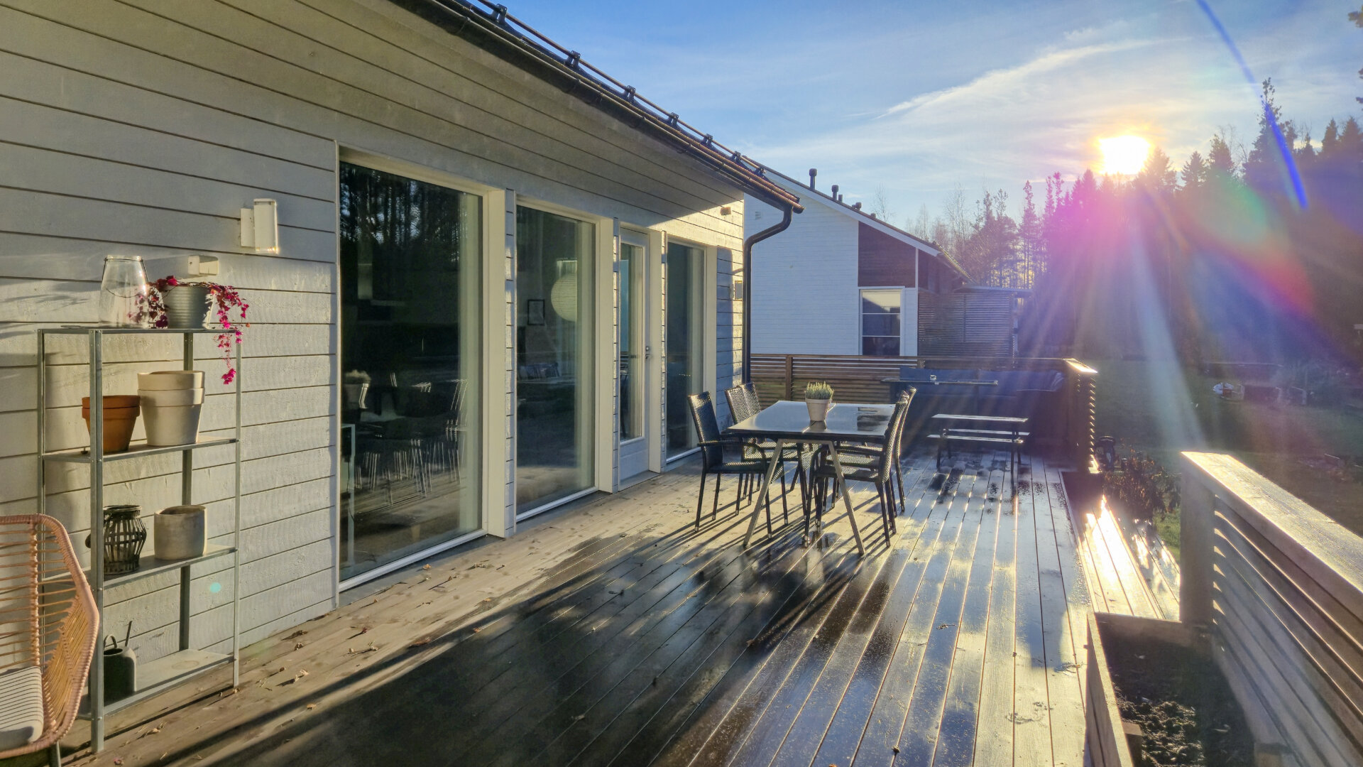 Asunto tarjoaa runsaasti luonnonvaloa suurten ikkunoiden ja korkean huonekorkeuden ansiosta. Takapihalle avautuu suuri terassi kahteen ilmansuuntaan, jossa voi nauttia auringosta lähes koko päivän, sekä tilava piha-alue monenlaisiin aktiviteetteihin.