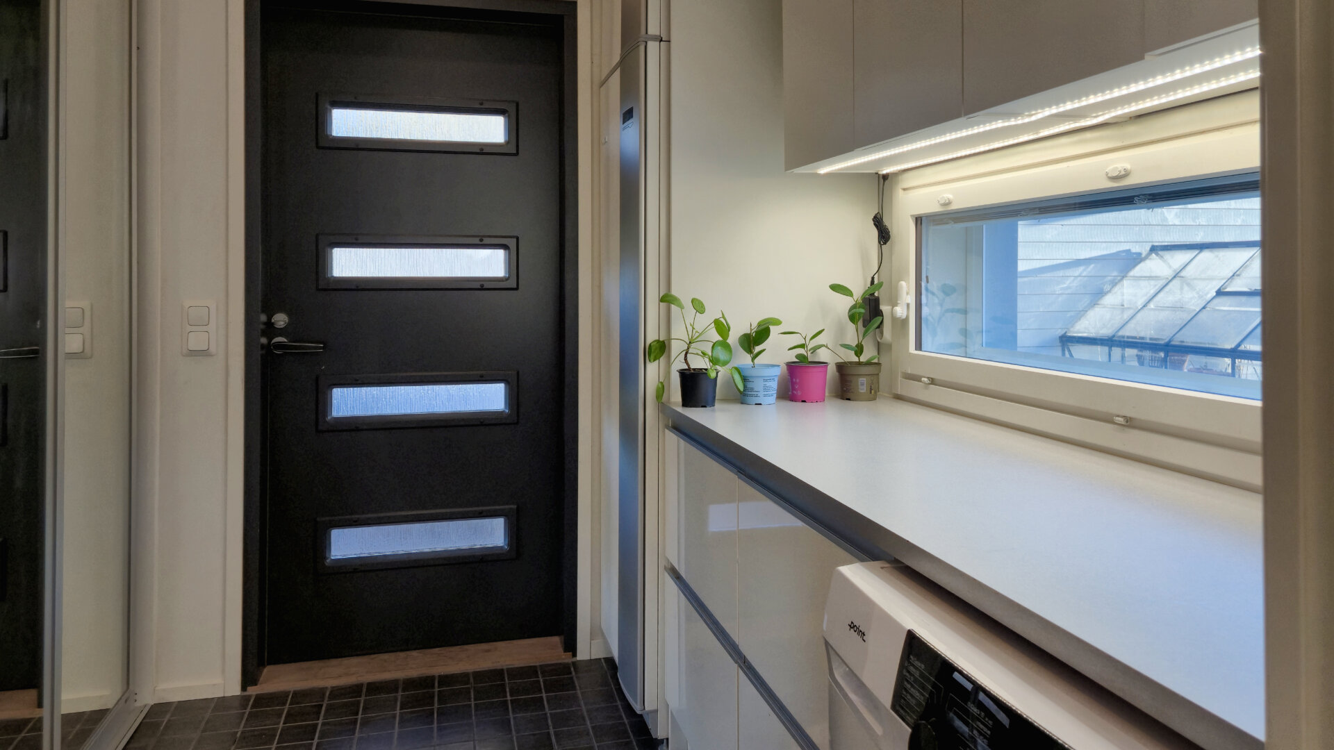 • Varusteet: Pesukone, pesukoneliitäntä, lattialämmitys, pöytätaso