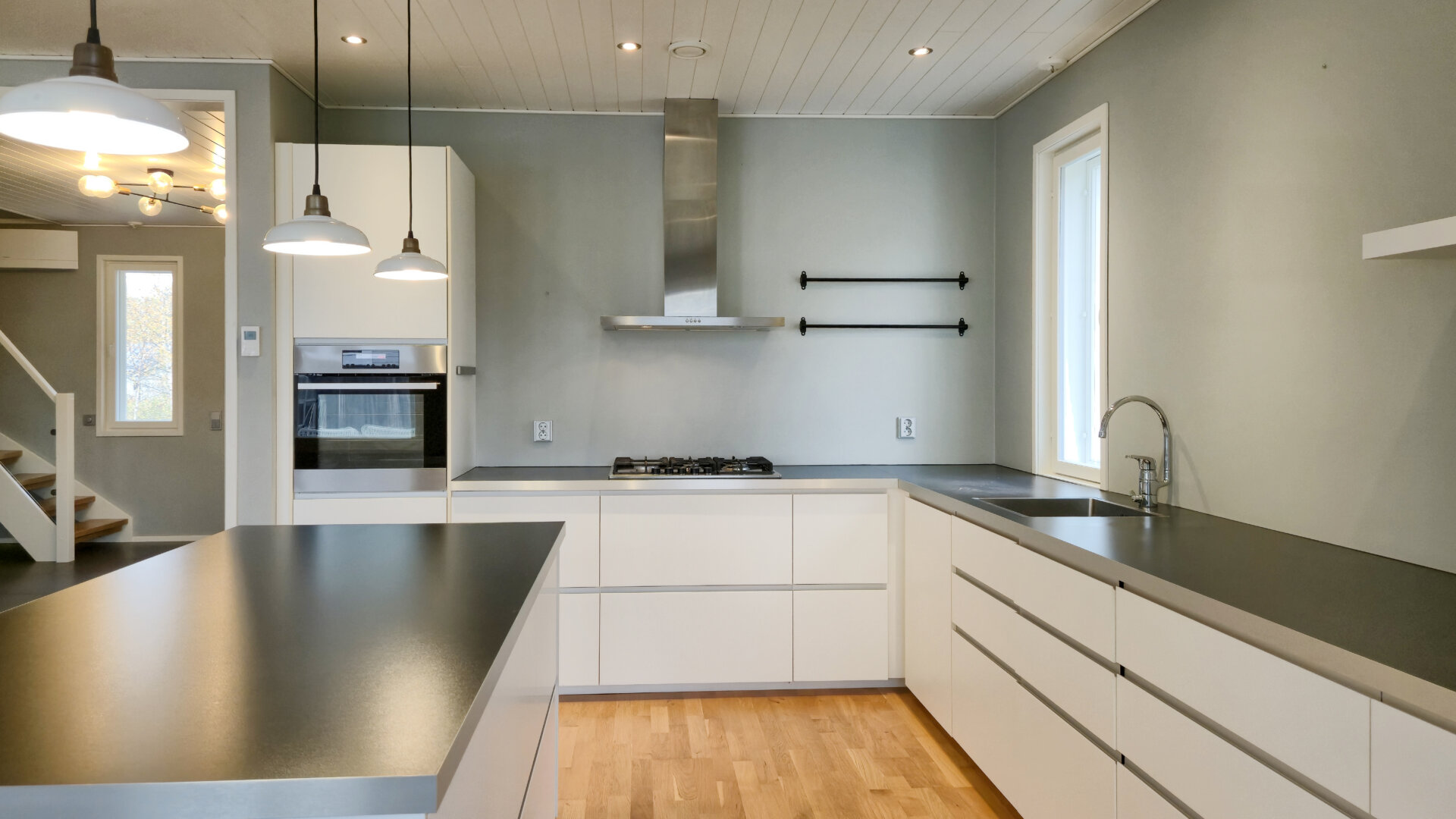 Köket, hemmets hjärta är utrustat med gasspis, vilket gör det till en dröm för dig som älskar att laga mat. De öppna ytorna mellan kök, matplats och vardagsrum bildar en perfekt plats att umgås med familj och vänner.