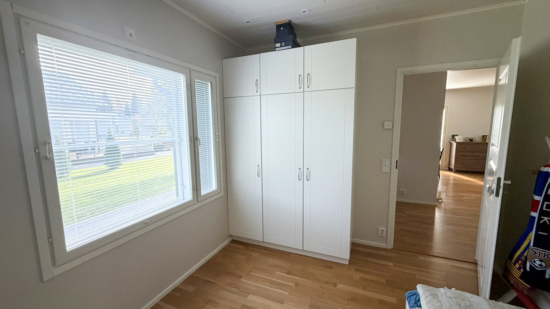 - Terassi länteen, olohuoneen ikkunat etelään ja länteen, makuuhuoneet länteen ja itään
