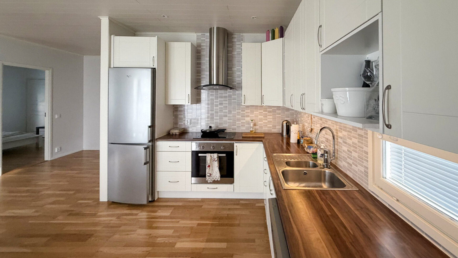 Valoisa päätyhuoneisto, jossa on tilava tonttialue. Autokatos ja varasto aivan asunnon läheisyydessä. Siisti alue, jossa mm. asfaltoitu ajotie ja kulkuväylät. Hyvä sijainti lähellä päiväkotia, kouluja, rantaa ja ravintolaa.