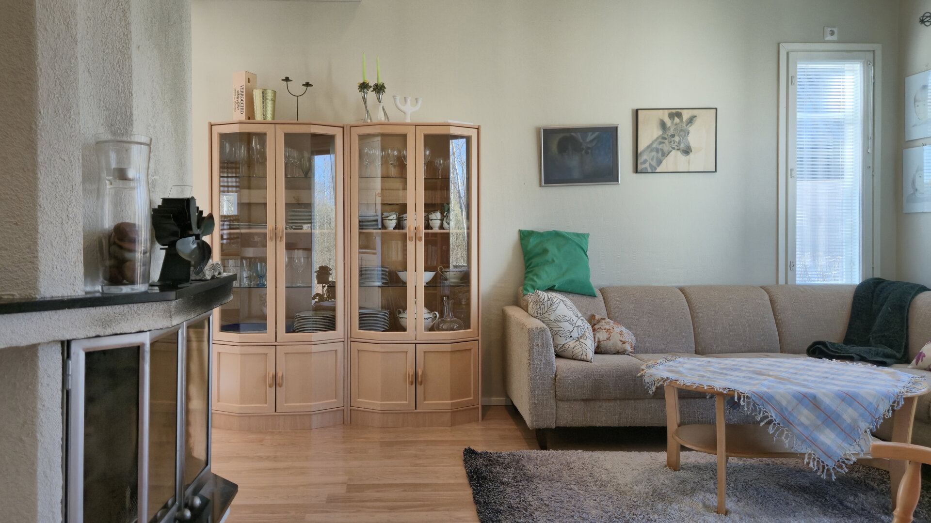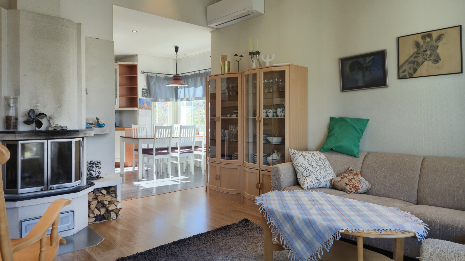 Förmånligt bolagsvederlag och dessutom är bostaden utrustad med vedspis och luftvärmepump, vilket håller boendekostnaderna låga.
