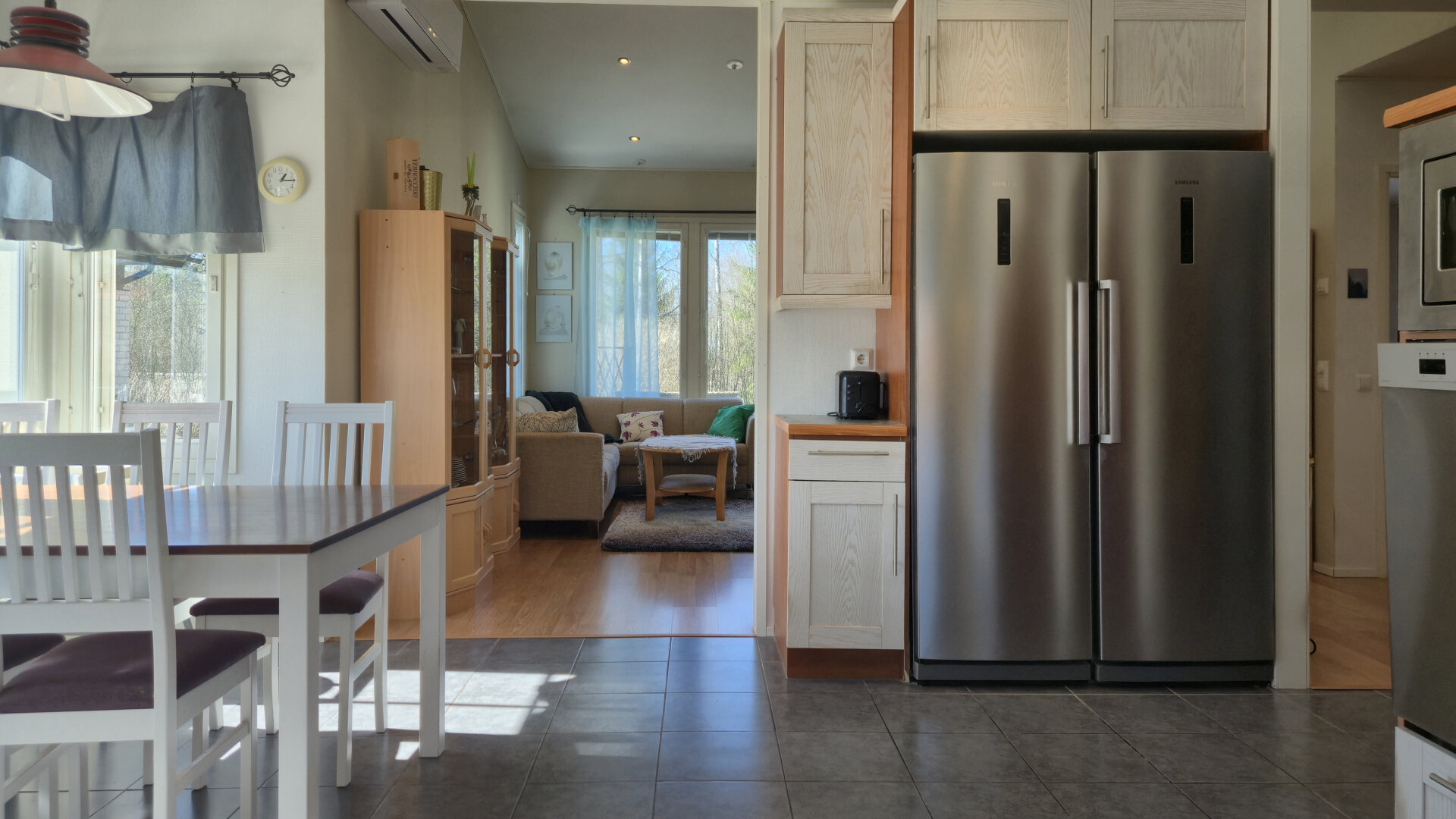 - Lattiamateriaalit: Lattialämmitys: Kylpyhuoneessa, keittiössä, eteisessä ja olohuoneessa.