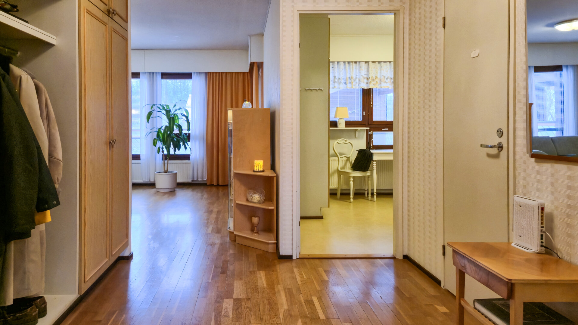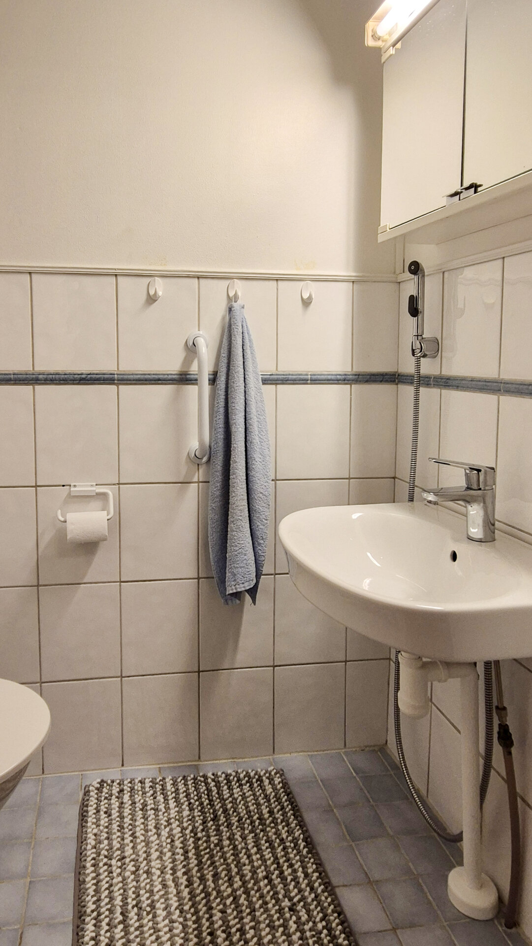 - Varusteet: Pesukoneliitäntä, wc-istuin, suihku, peilikaappi, peili, kiinteät valaisimet