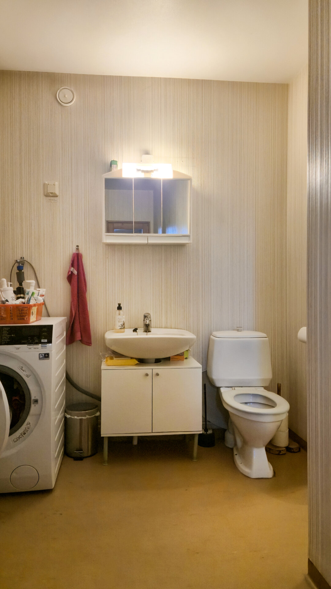 - Varusteet: Pesukoneliitäntä, wc-istuin, suihku, peilikaappi, kiinteät valaisimet