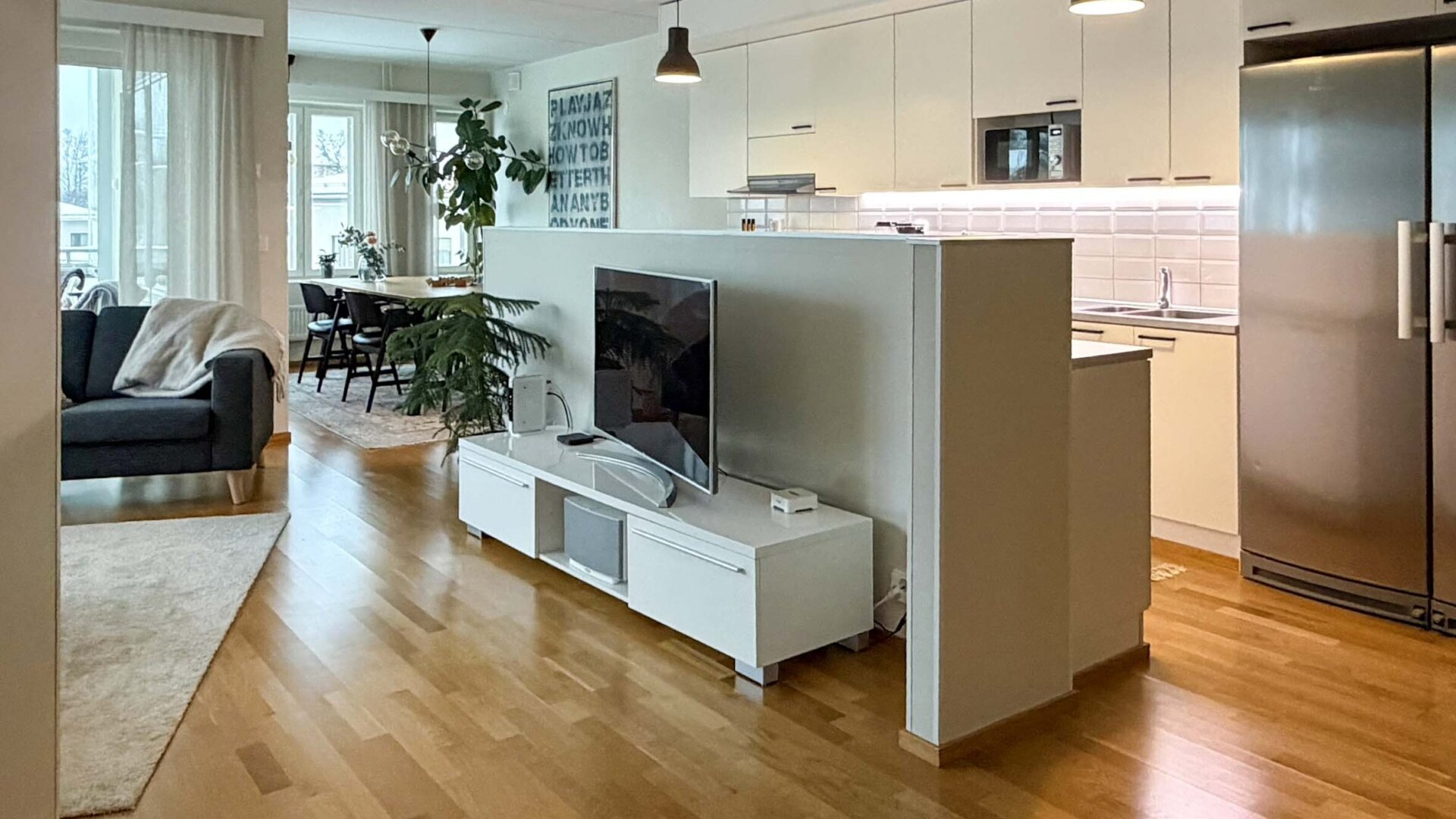 - Varusteet: Jääkaappi, pakastekaappi, Liesituuletin, mikroaaltouuni, astianpesukone, kiinteät valaisimet