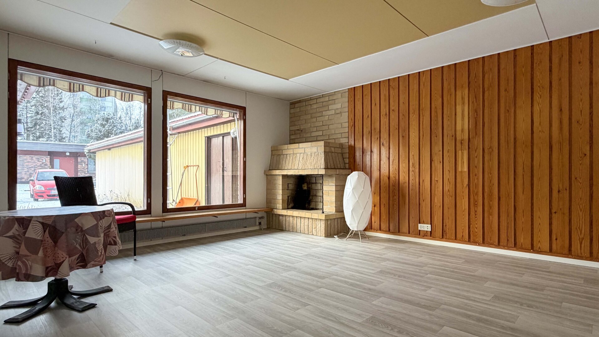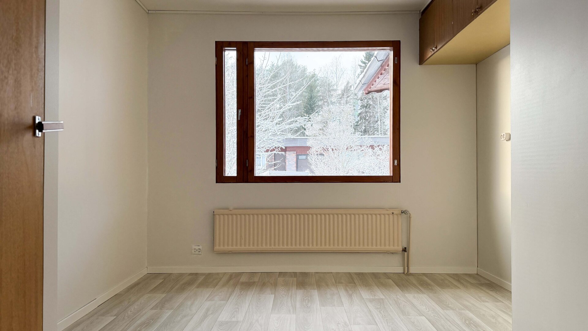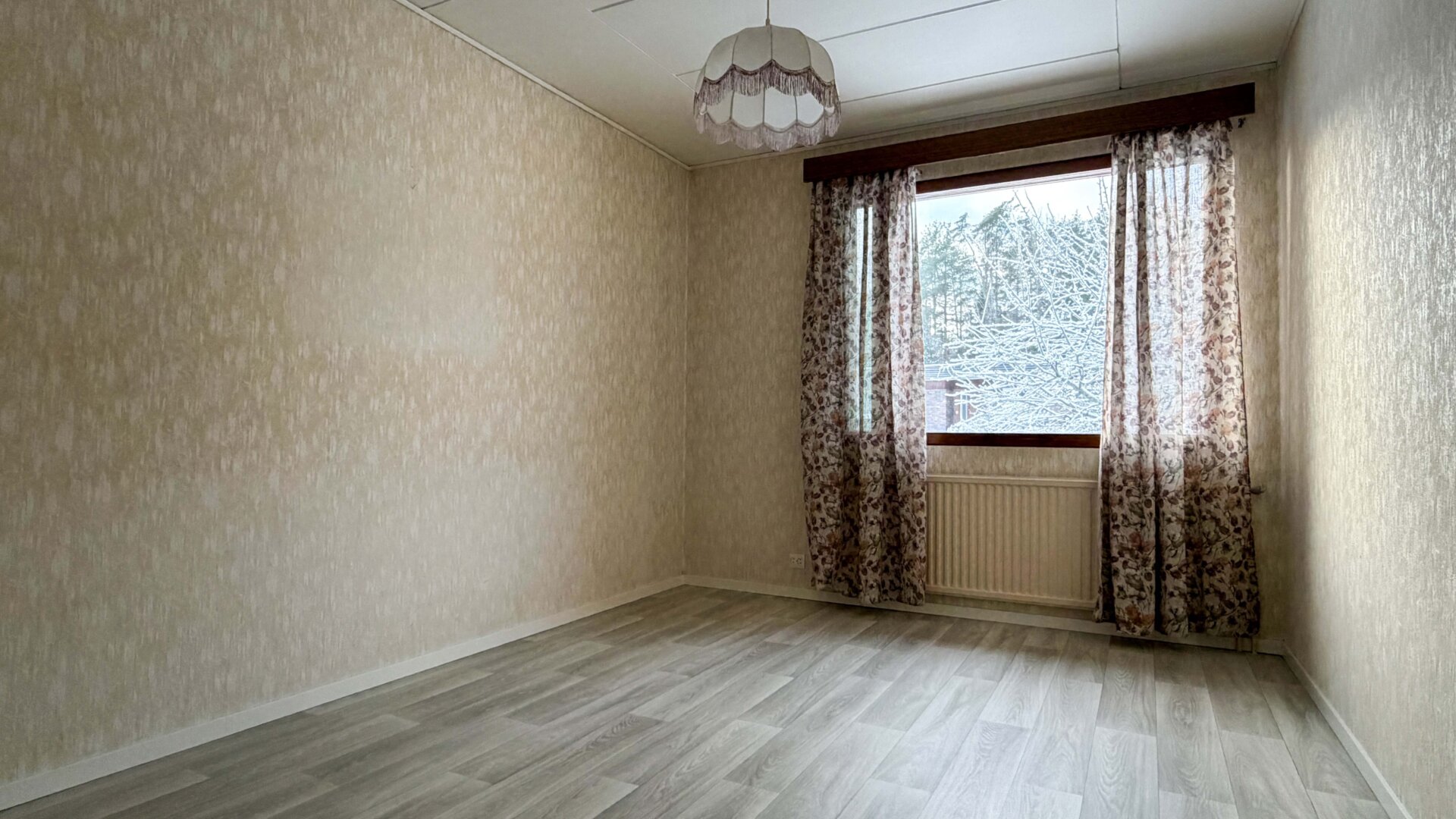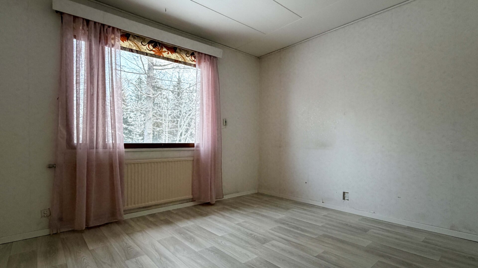 - Seinämateriaalit: Puu, tapetti