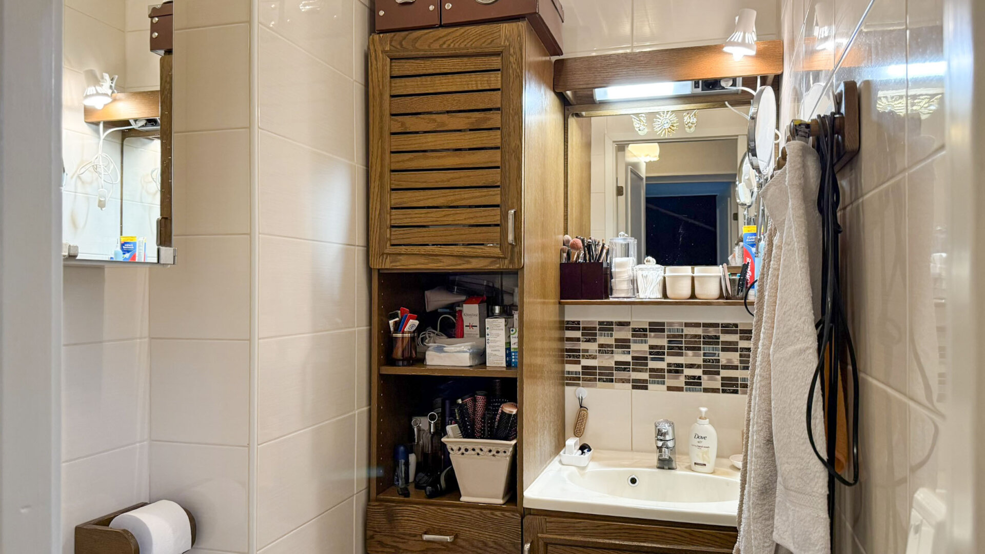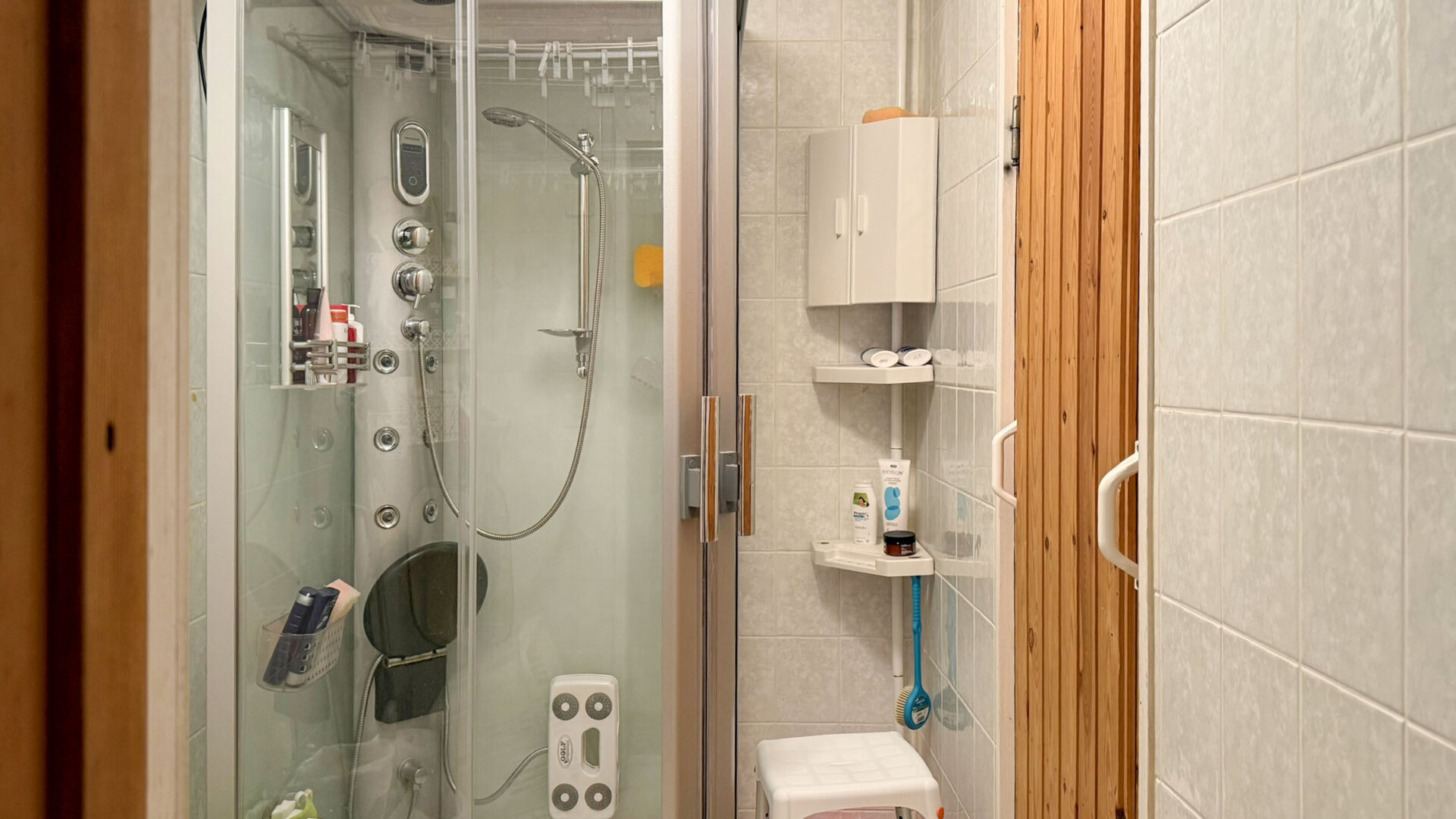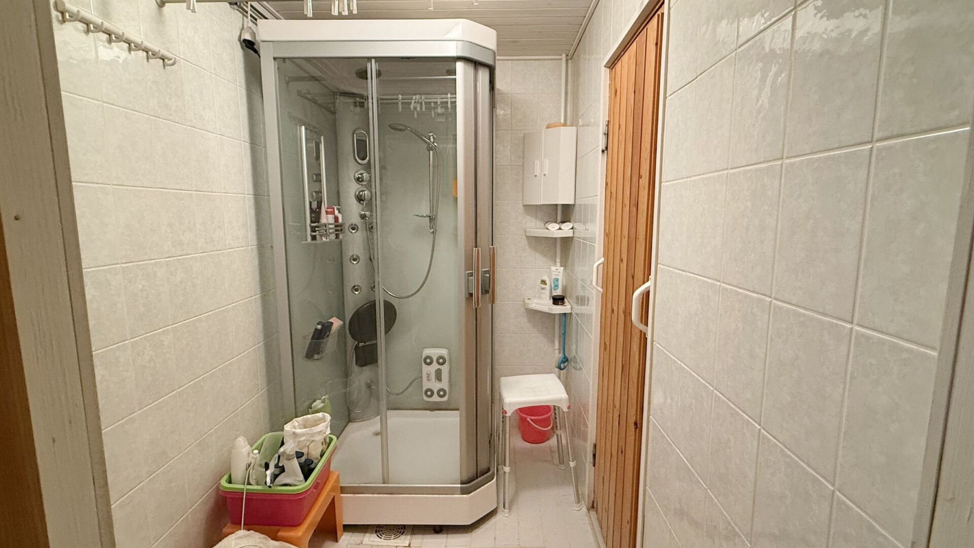 - Varusteet: Suihkukaappi, wc-istuin, peili