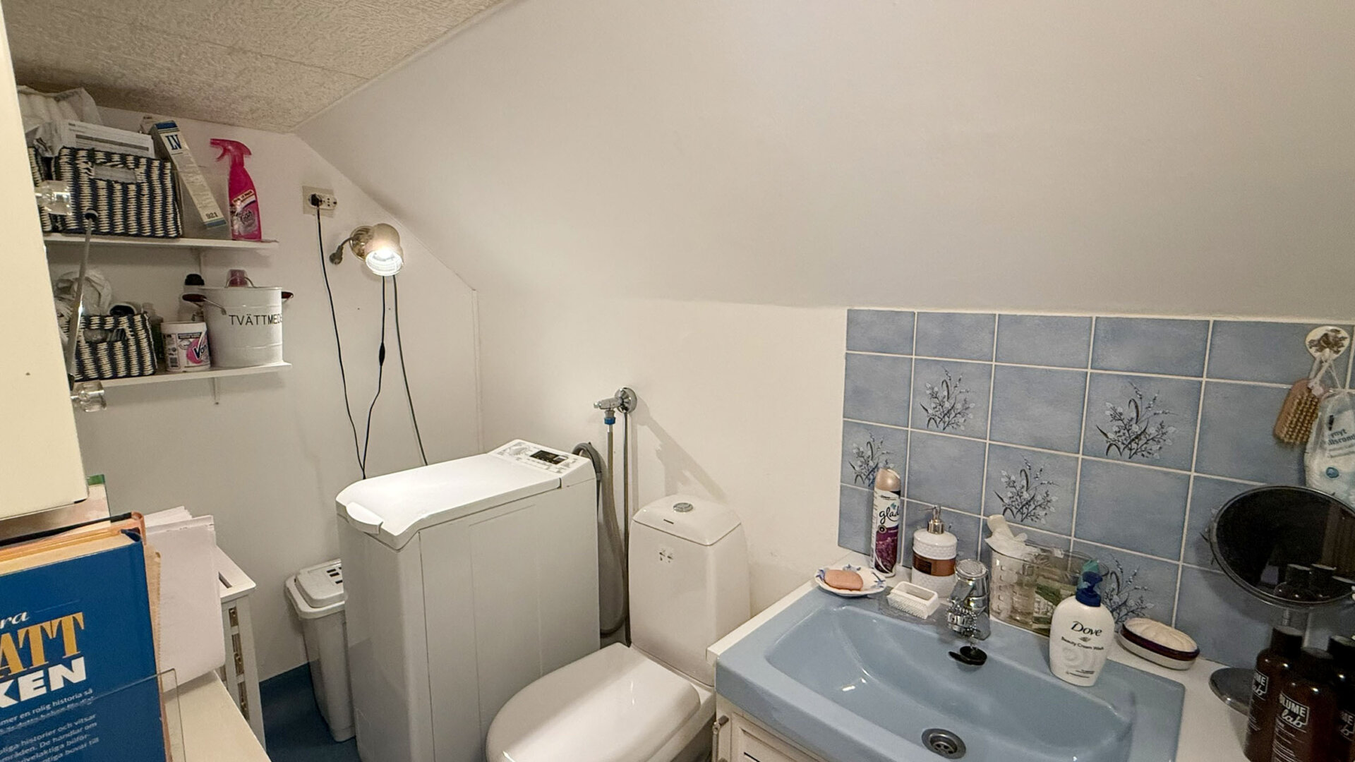 Huset består av kök, vardagsrum, sovrum, wc och kvist i vån 1 på vindsvåningen finns 2 sovrum, badrum/bastu och wc samt förrådsutrymmen ca 117 m2 lägenhetsyta. Ett isolerat garage för 2 bilar har byggts 1988 ca 44/48 m2.