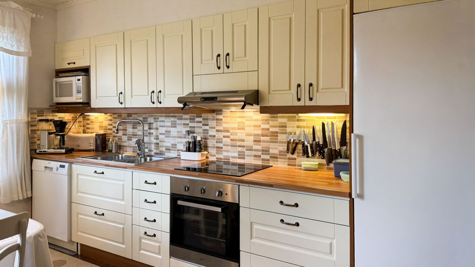 - Varusteet: Jääkaappi, Liesituuletin, astianpesukone
