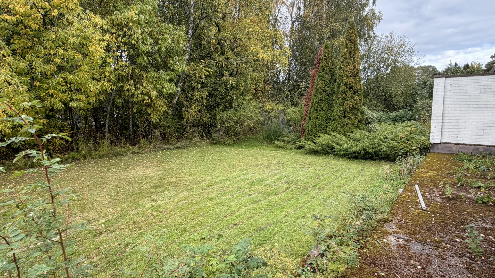 Välplanerat egnahemshus byggt 1965 omf. 4r+kök+wc/bdr, hall, tvättrum, bastu ca 110 m2 + pannrum och förråd totalt ca 140 m2. Tomt 463 m2, delvis skyddad och inhägnad mot öster, terrass och tomtområde mot väster.