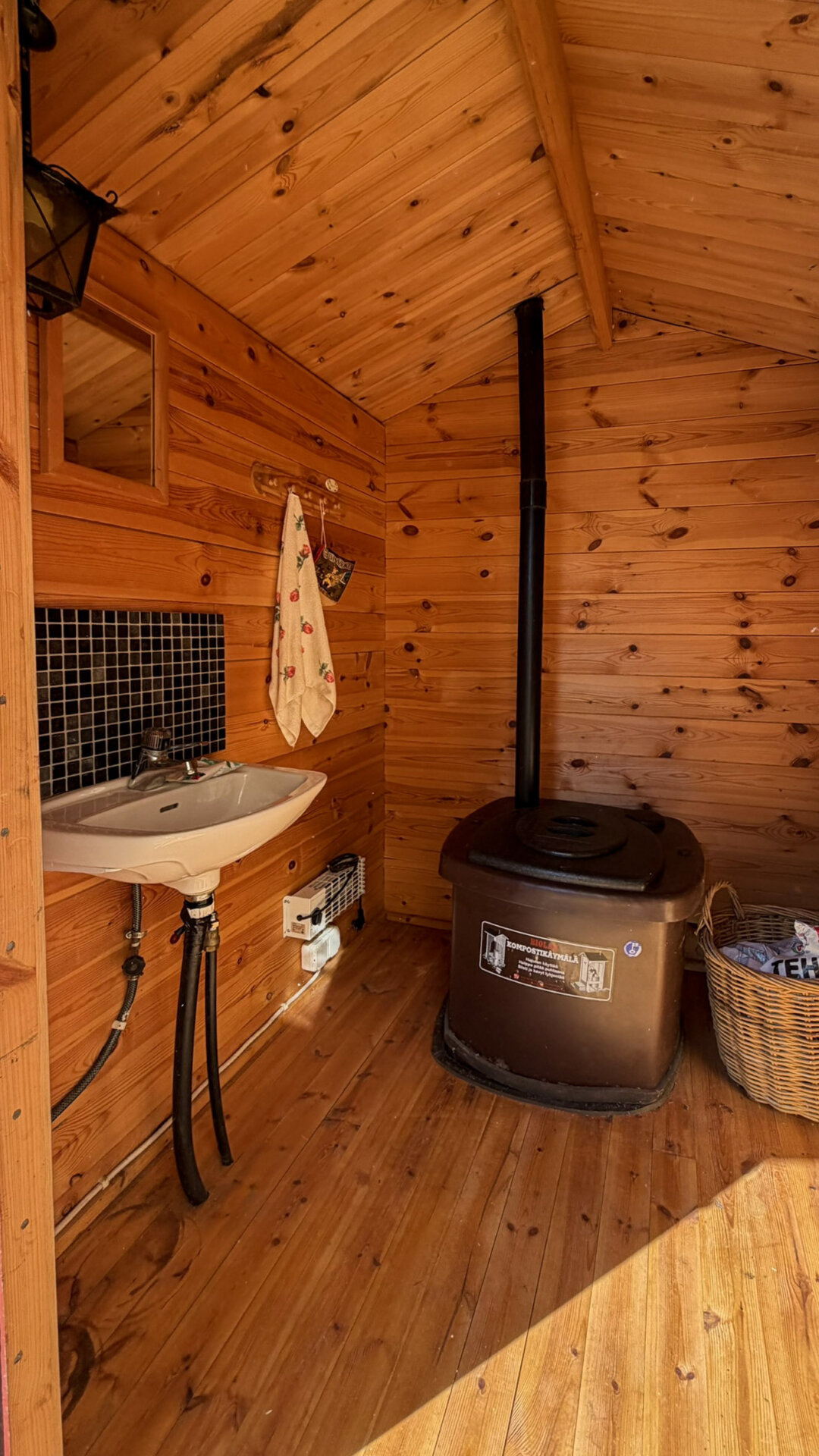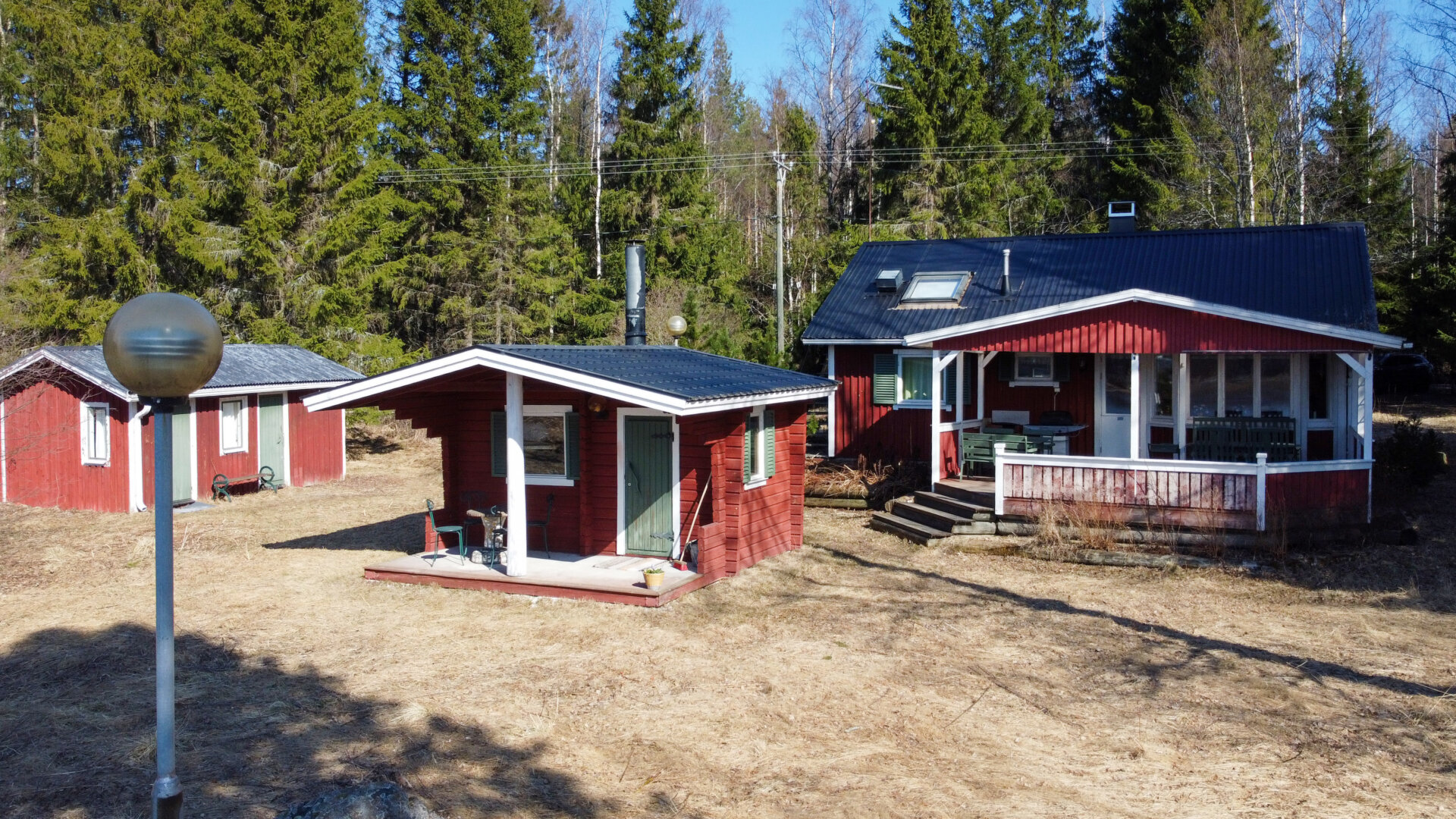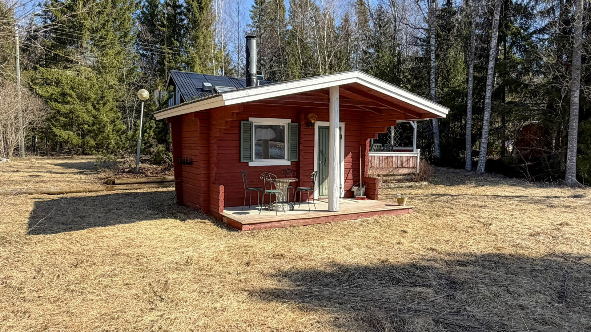- Erillinen saunarakennus, jossa suihkuhuone. Pesukone ja pesukoneliitäntä varastorakennusessa.