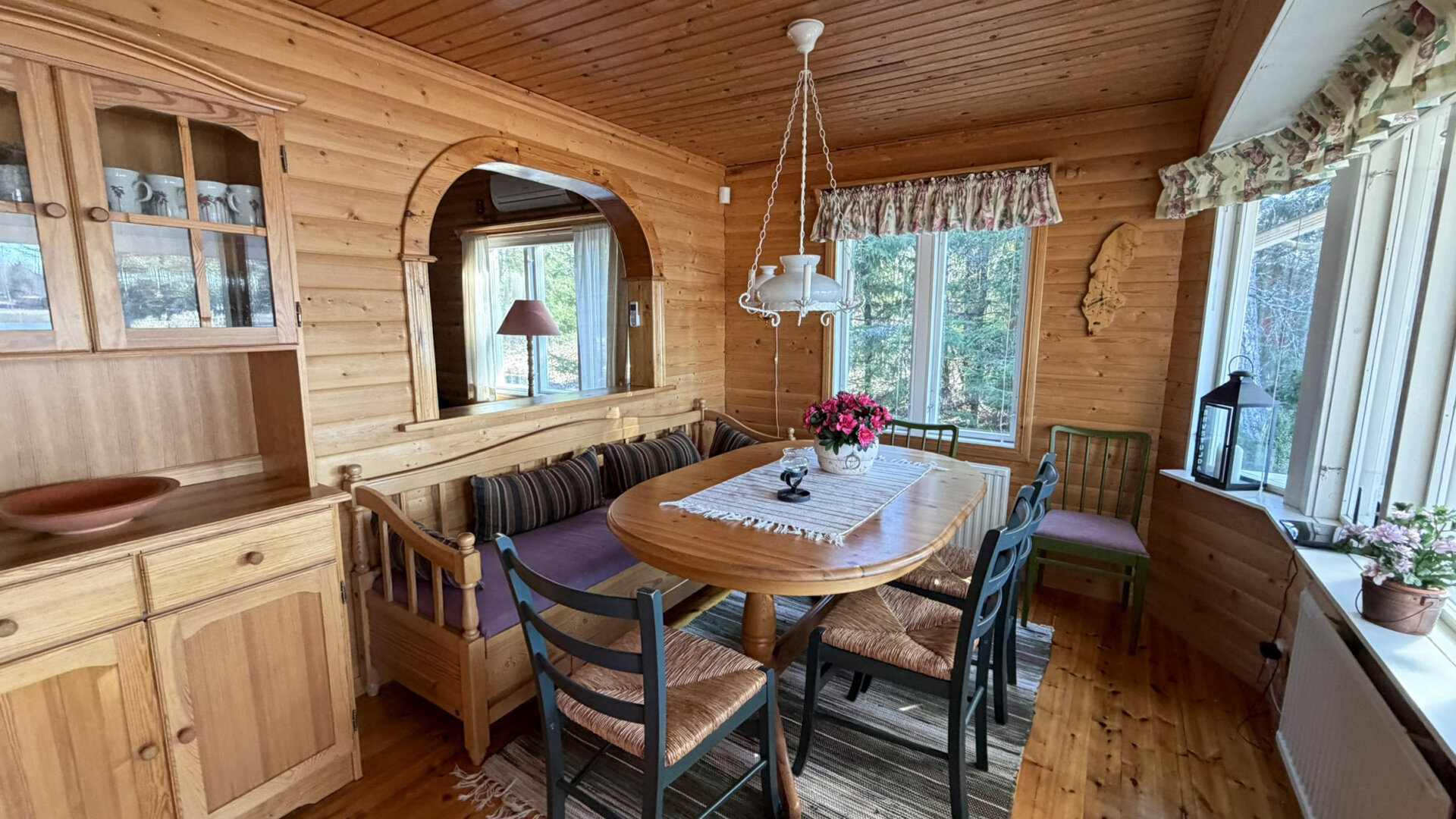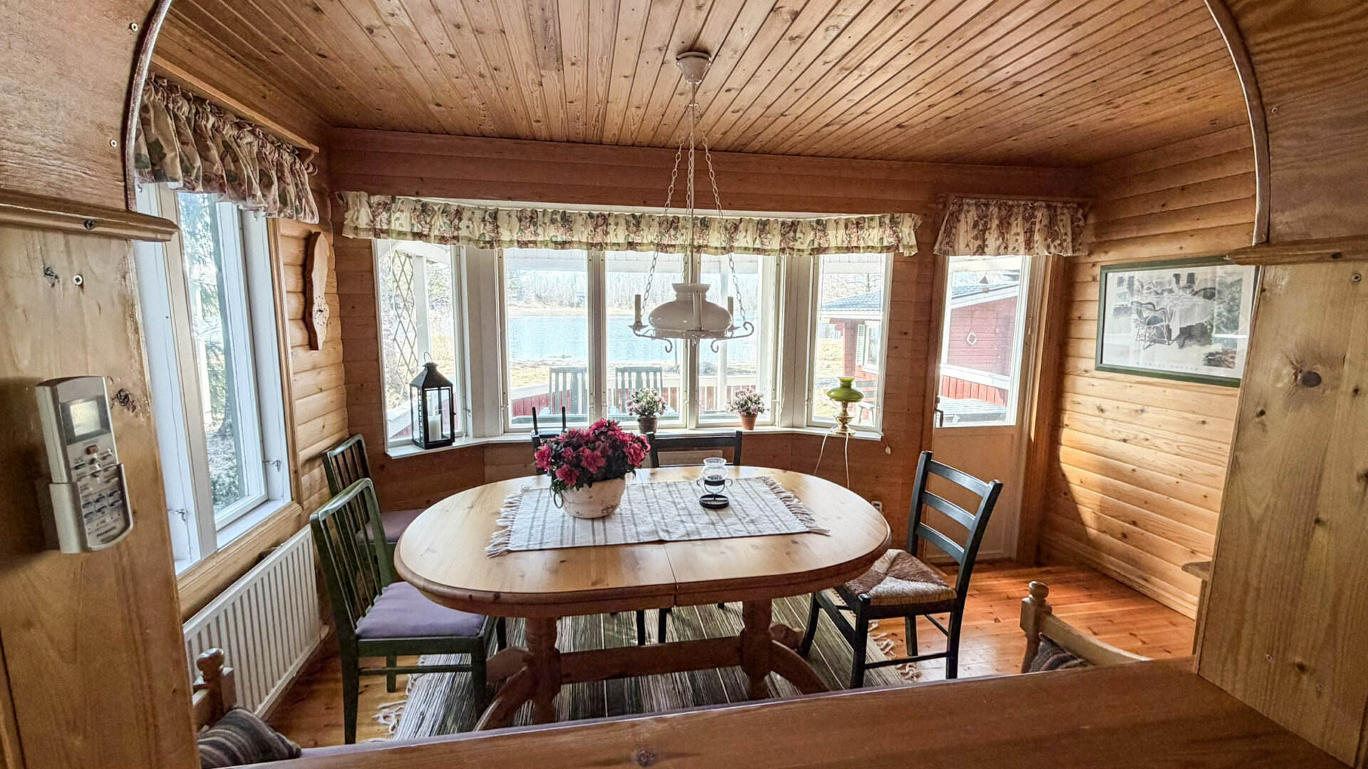 Egen tomt om 2 050 m², med strandlinje mot söder som ger ett varmt och soligt läge och fin utsikt över vattnet. Trevligt och fint villaställe i naturnära miljö.