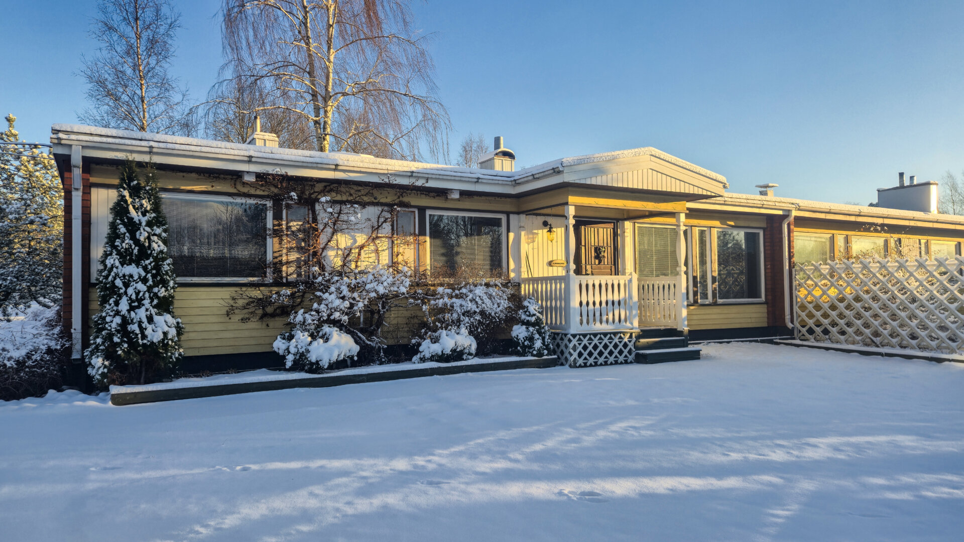 Huset är byggt 1968 och omfattar 4r+k+wc+tvättrum+bastu 99,4 m2. Fin 896 m2 stor tomt med ett rymligt dubbelgarage med förråd. Värme- och bruksvattenrören har blivit förnyade 2006, köket förnyat 2007, badrummet delvis förnyat, och pannan bytt 2018 samt lite ytrenoveringar genom årens lopp.