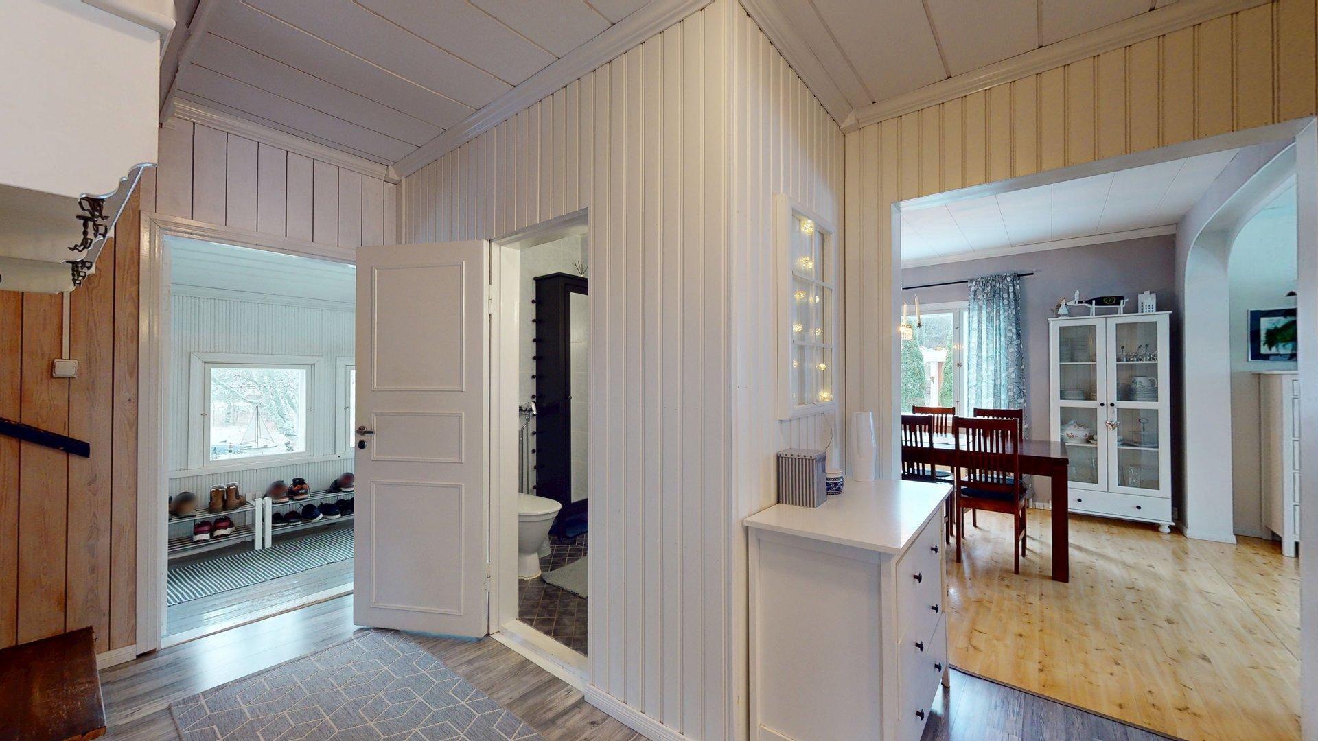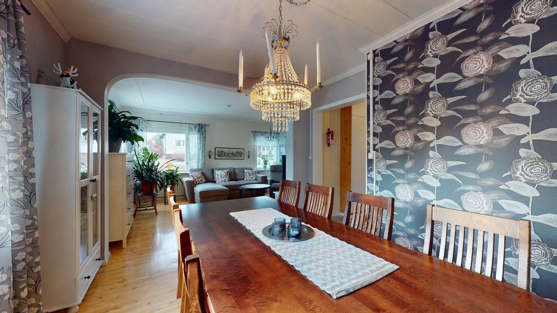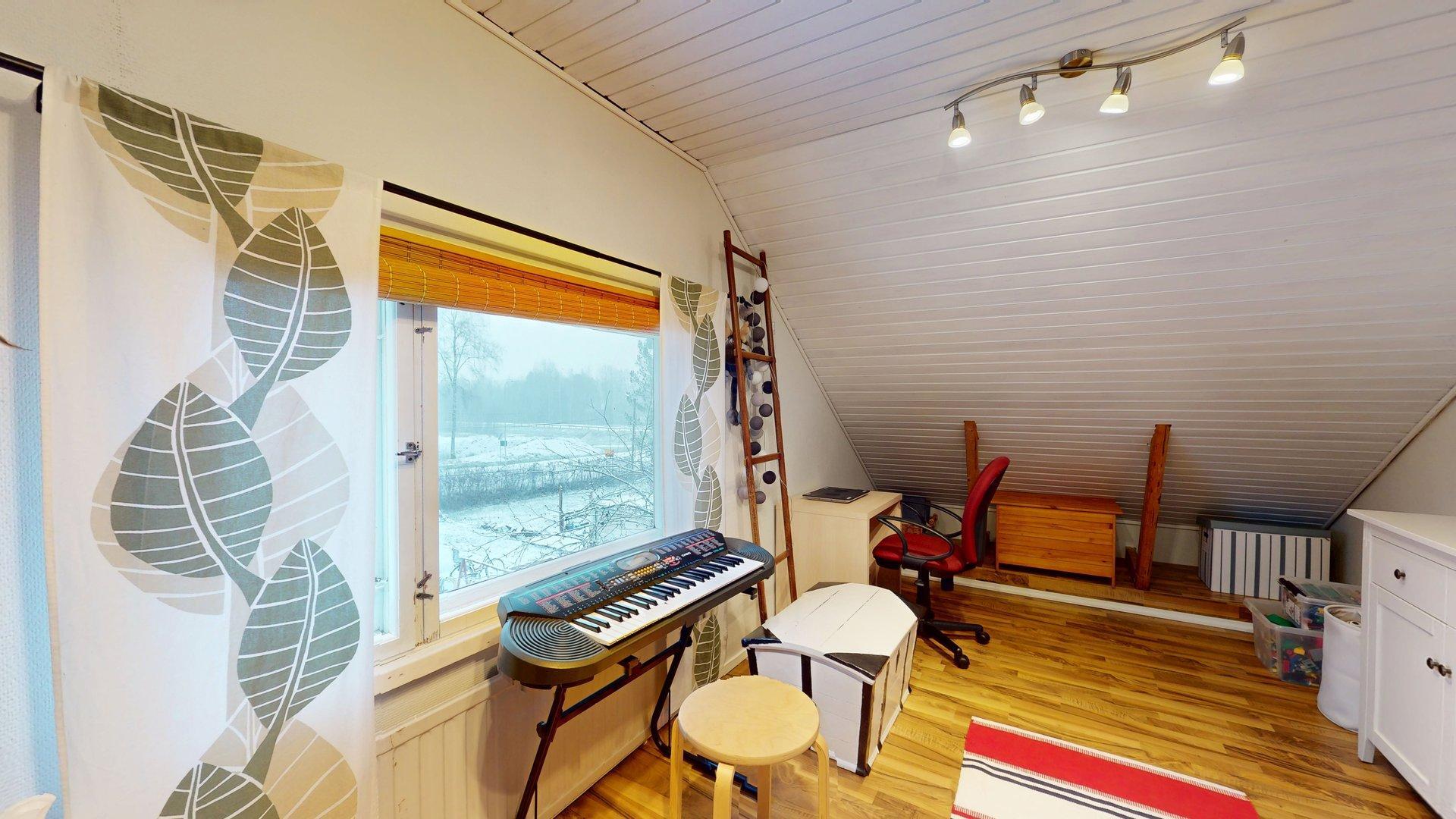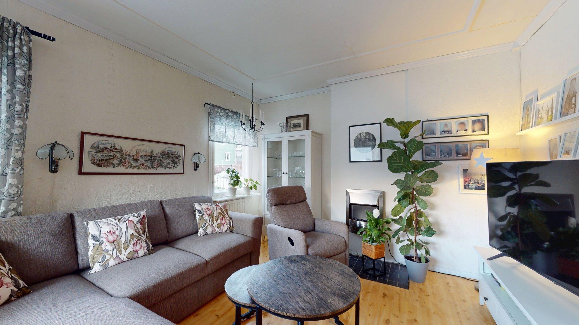 Välkommen till Kyrkostrand och detta charmiga egnahemhus som är uppfört 1954/55 i 1 1/2 plan + källarvåning. Huset är gediget byggt med husstommen uppförd på stående stock. Husets bostadsytor består av vardagsrum och matsal, sovrum, wc, tambur och kök som totalrenoverats år 2016, 1- våningens bostadsyta ca 74 m2, på den mysiga vindsvåningen finns 2 st rymliga sovrum samt allrum ca 44 m2, vilket ger totalyta 118/138 m2. I husets källarvåning är ca 80 m2, vari finns 2 rymliga förråds/hobbyrum, pannrum, klädvård och år 2010 totalrenoverad badrum/wc/bastuavdelning.