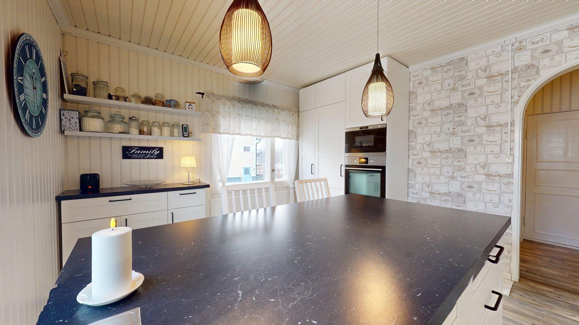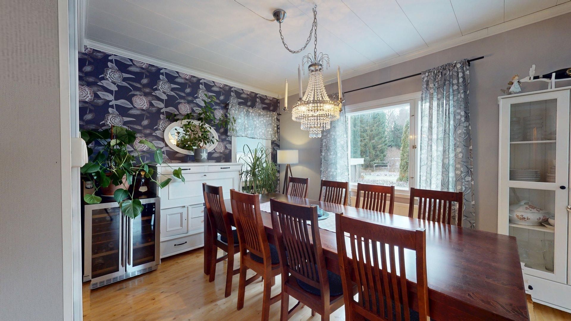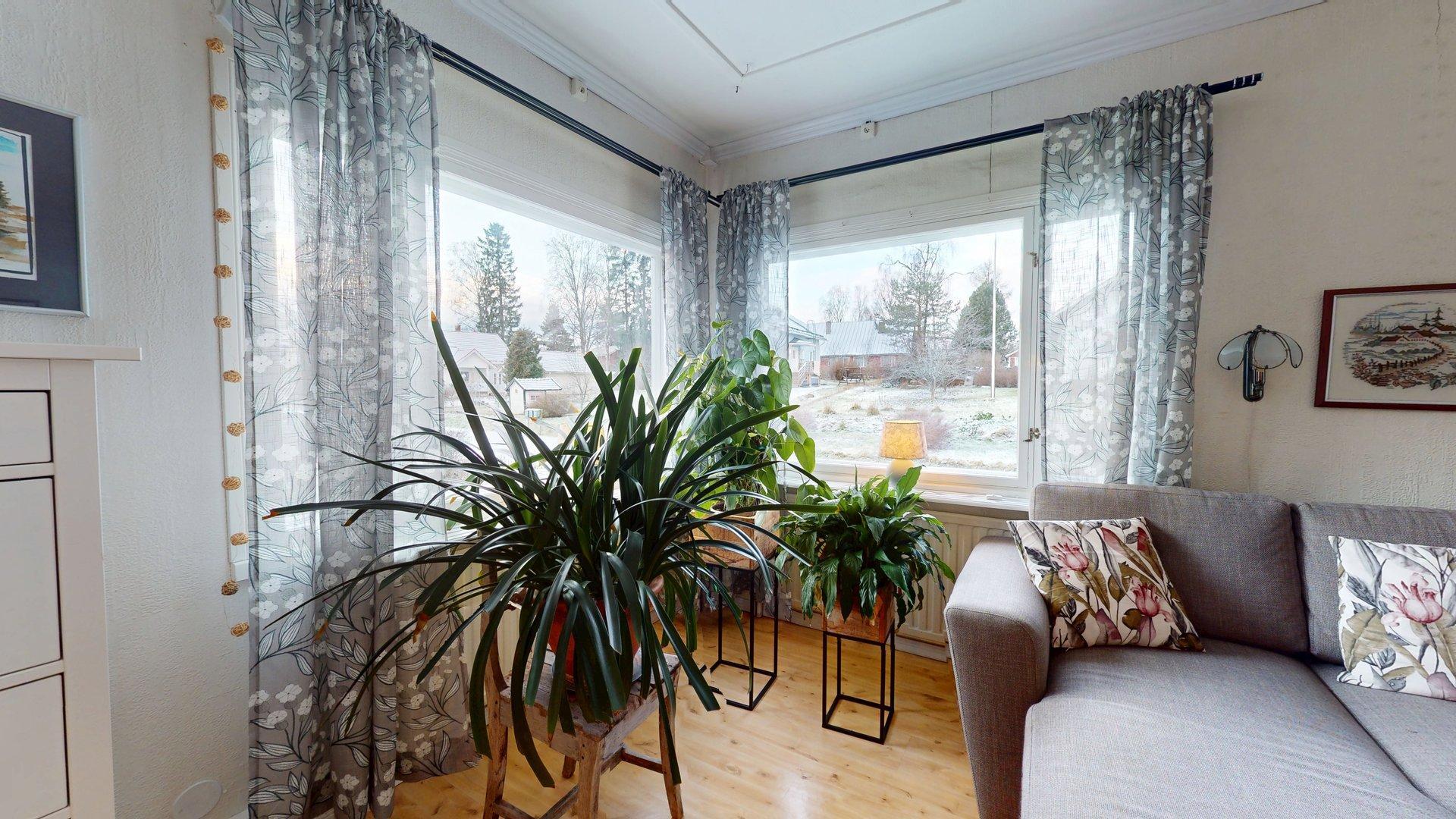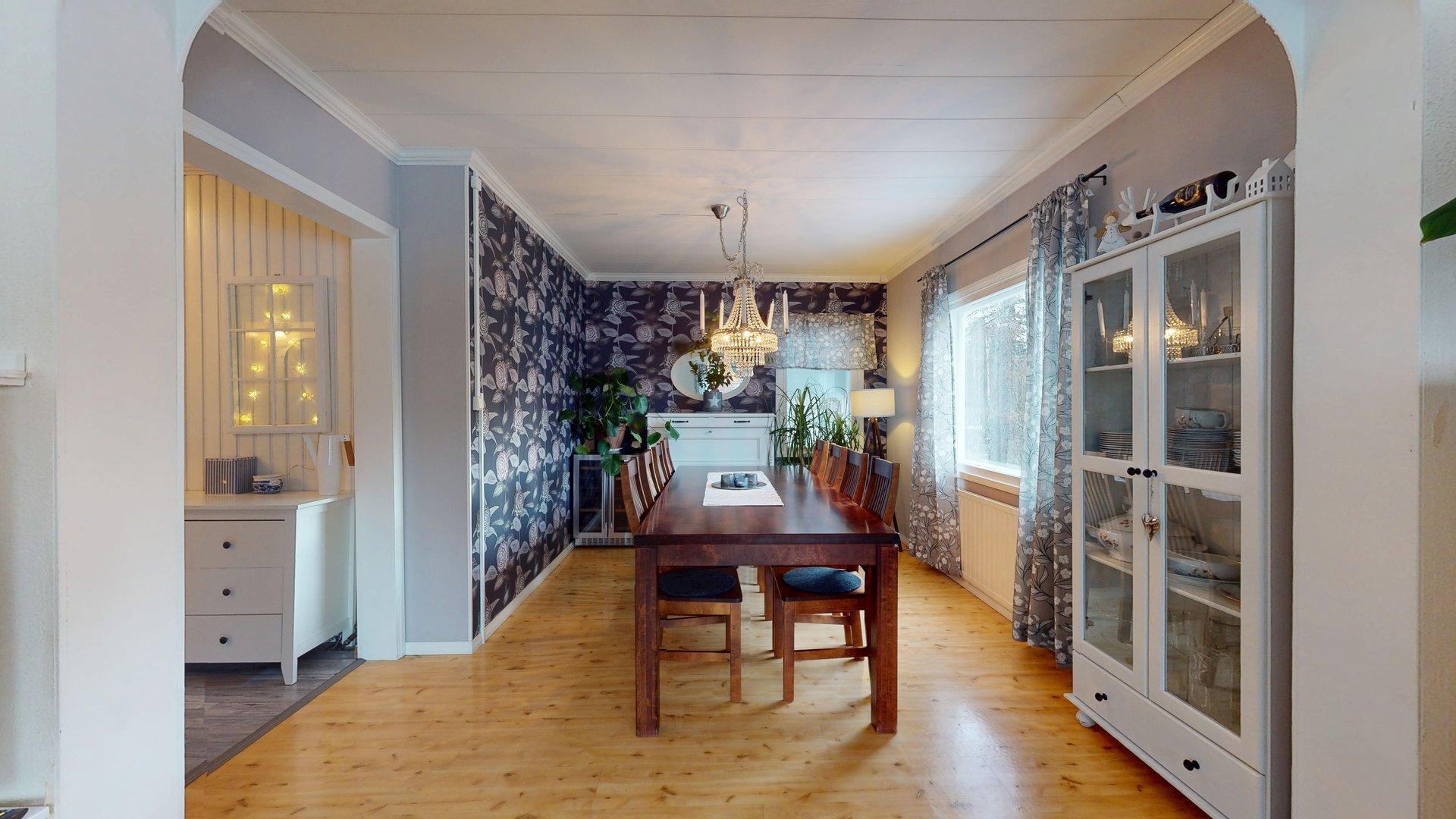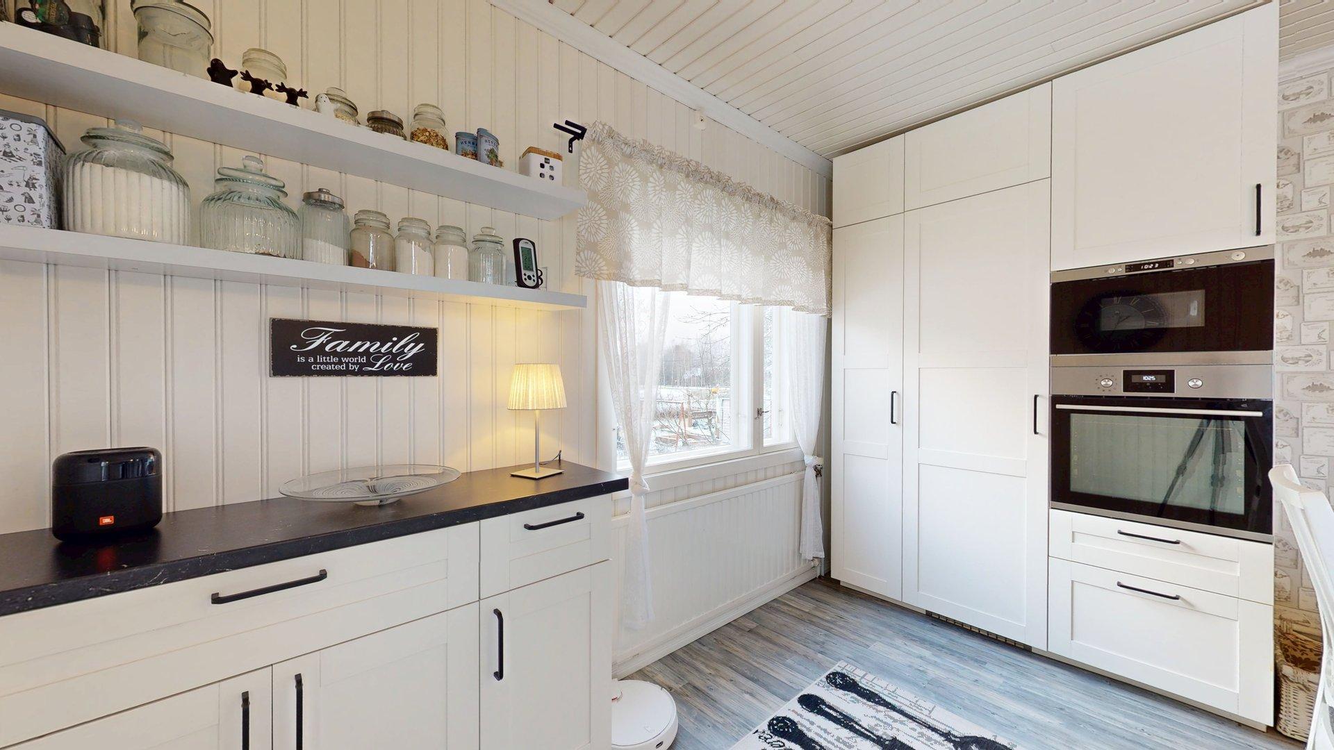 Tervetuloa Kirkkorannalle tutustumaan tähän viehättävään omakotitaloon, joka on rakennettu vuosina 1954/55 ja käsittää 1 1/2 kerrosta + kellarikerroksen. Vankkarakenteinen pystyhirsi runko. Asuintilat koostuvat olohuoneesta ja ruokasalista, makuuhuoneesta, wc:stä, eteisestä sekä keittiöstä, joka on täysin remontoitu vuonna 2016. Ensimmäisen kerroksen asuinpinta-ala on noin 74 m². Viehättävässä yläkerrassa on kaksi tilavaa makuuhuonetta sekä oleskelutila, yhteensä noin 44 m², mikä tekee kokonaispinta-alaksi 118/138 m². Kellarikerroksen pinta-ala on noin 80 m², jossa on kaksi tilavaa varasto-/harrastetilaa, pannuhuone, kodinhoitotila sekä vuonna 2010 täysin remontoitu kylpyhuone/wc/saunaosasto.