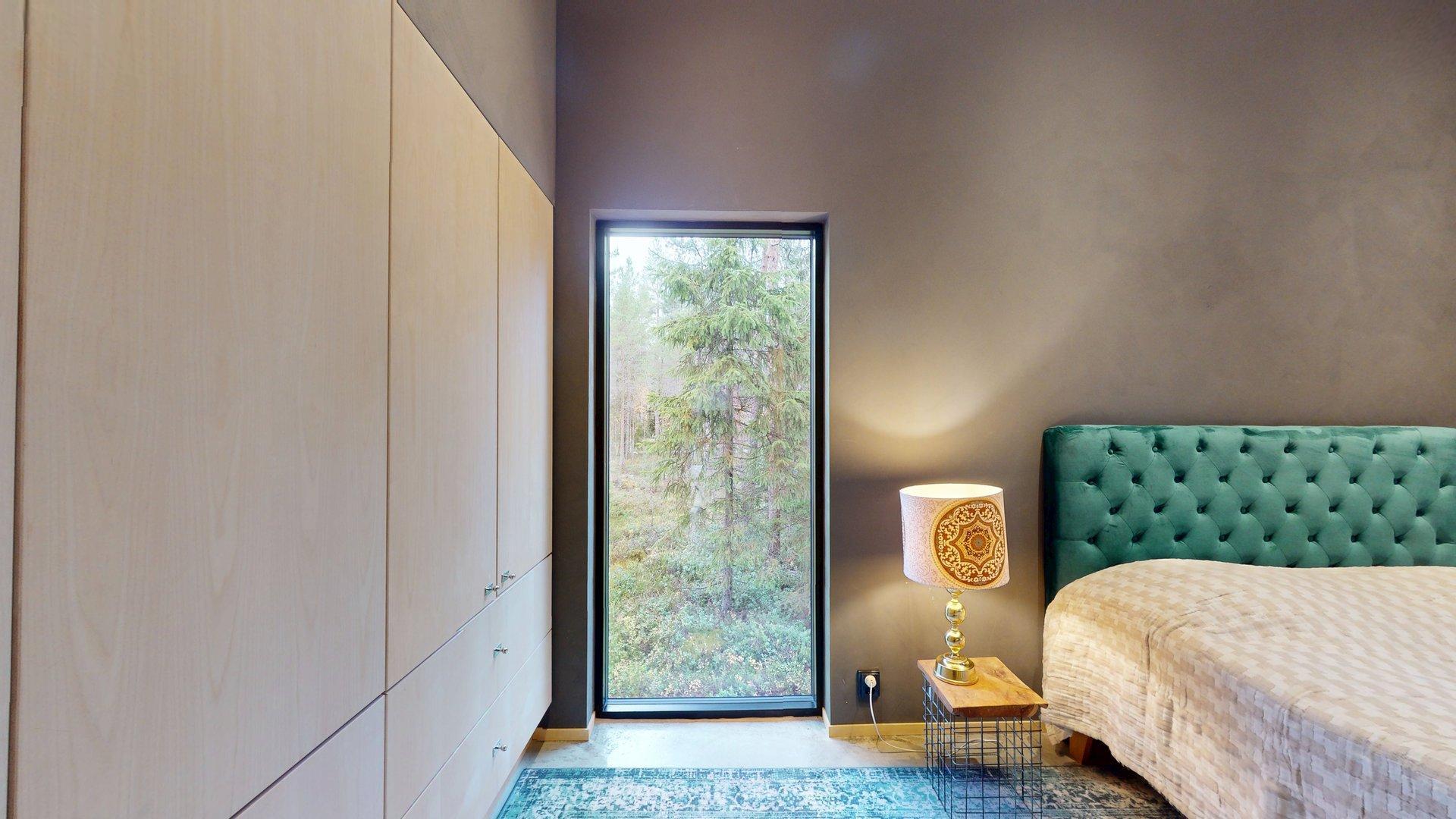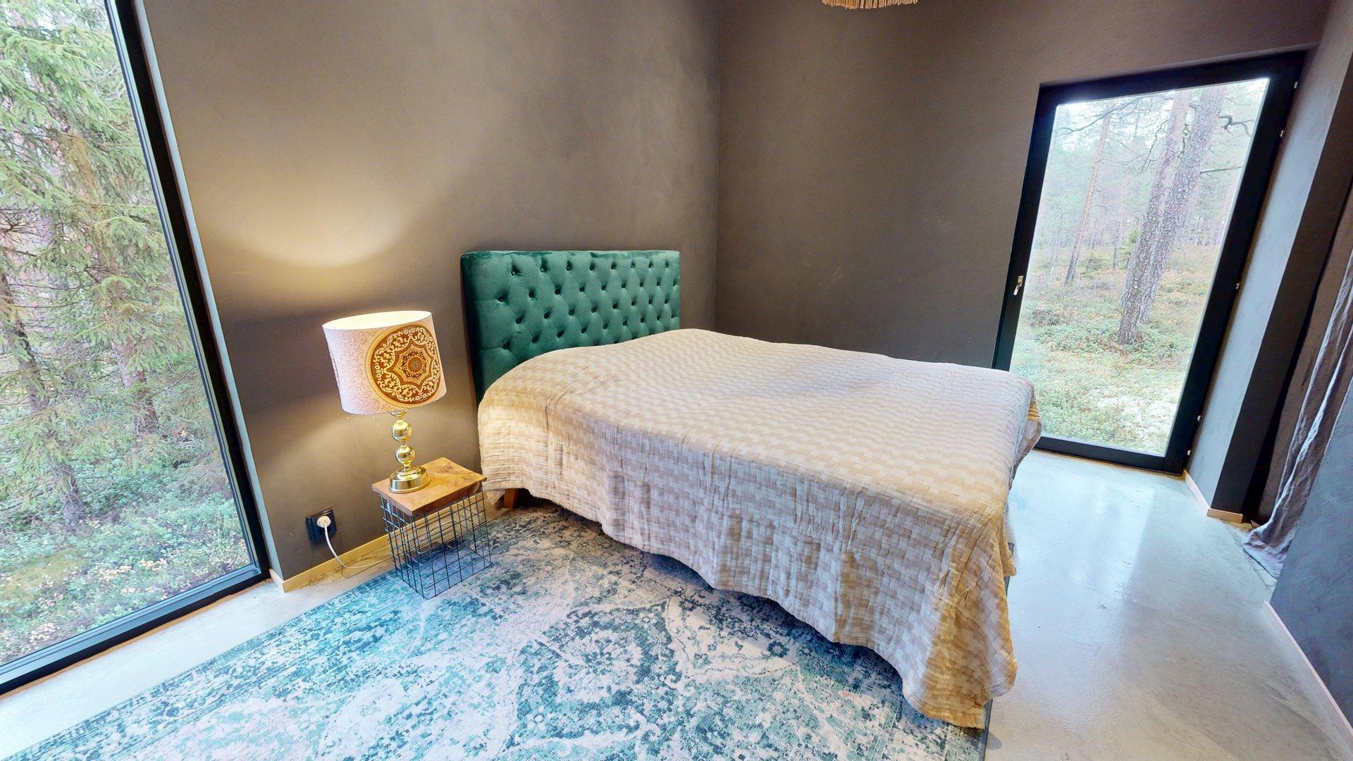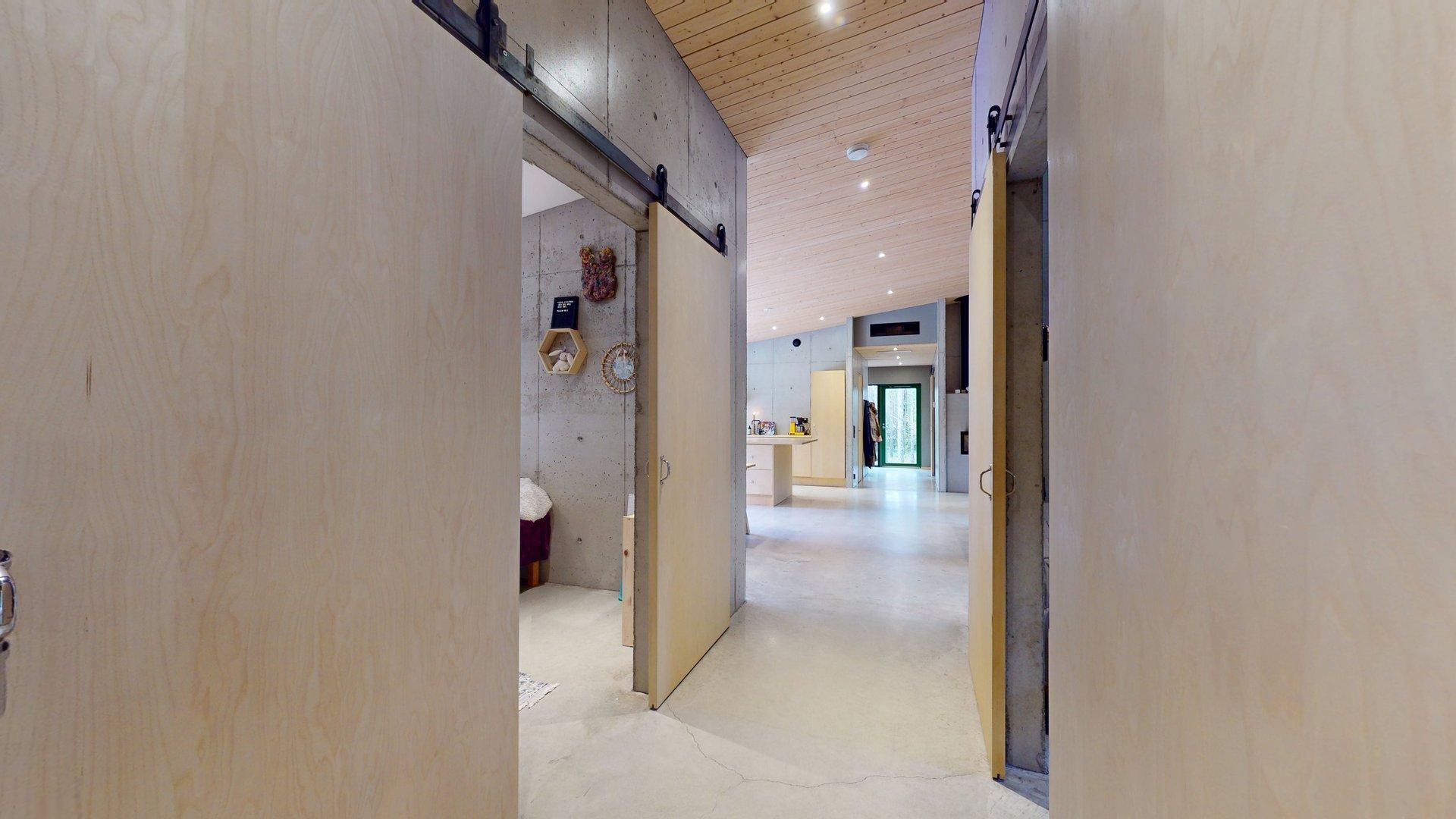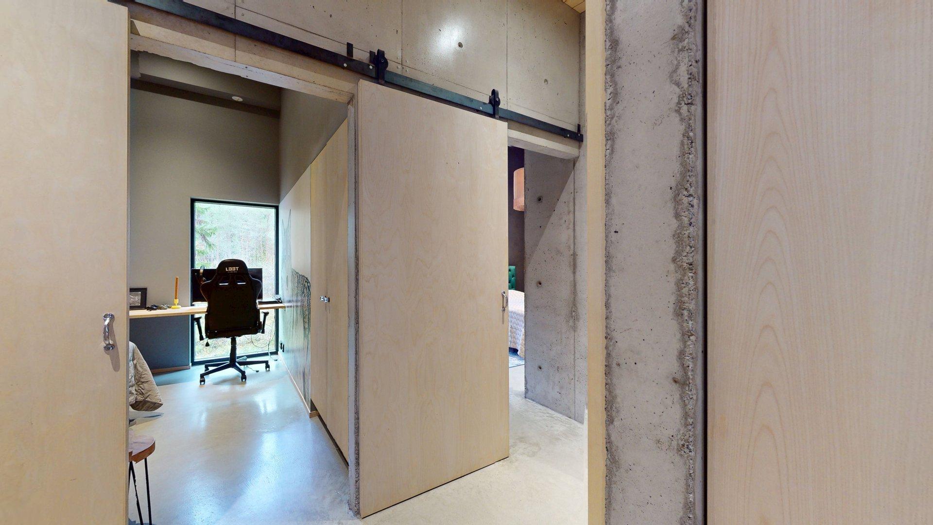 Sisätiloissa kohtaat hiotut betonilattiat ja betoniseinät tyylikäs, kestävä ja rauhallinen tunnelma, joka kestää aikaa. Suuret etelään suuntautuvat ikkunat tarjoavat näkymän luonnon vuodenaikojen vaihteluun.