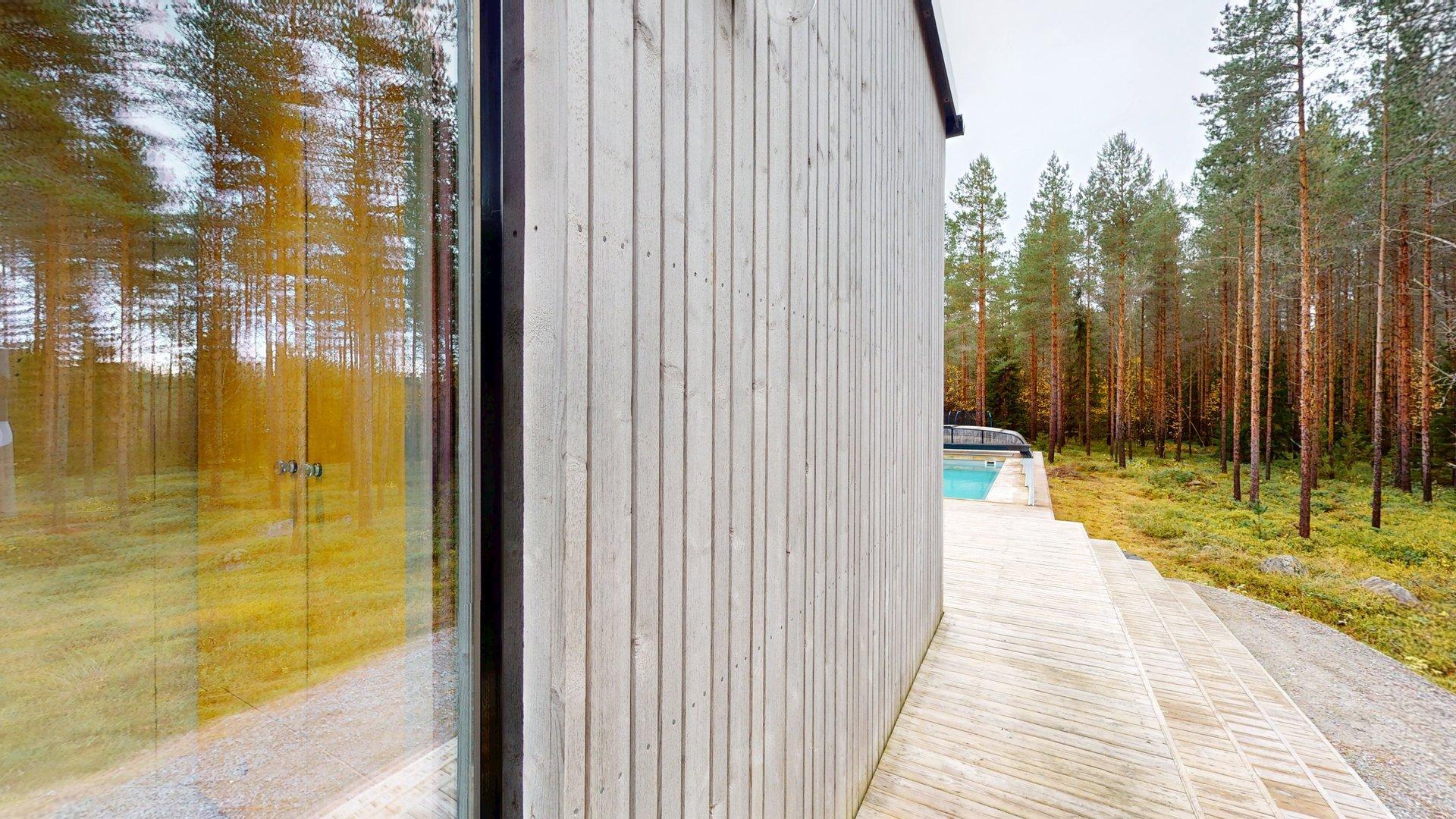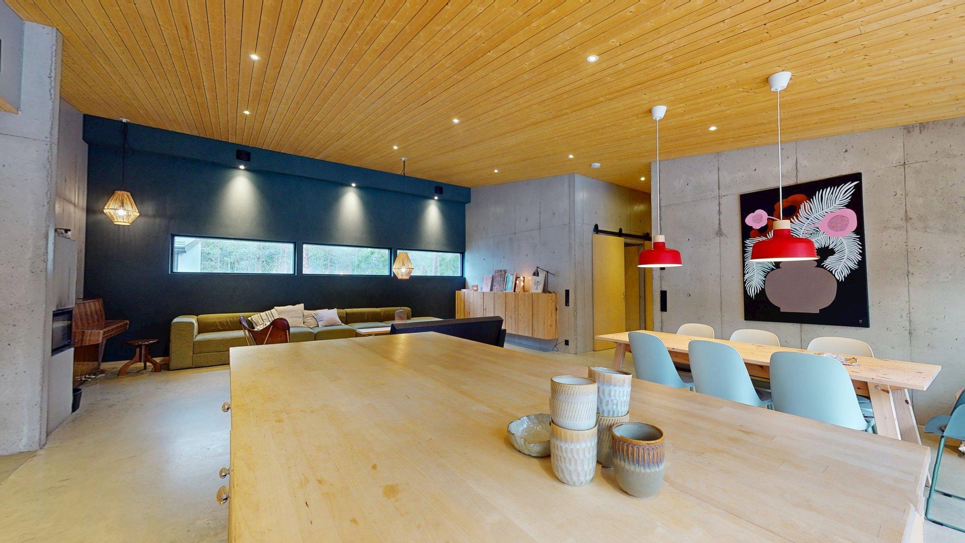 Nyt sinulla on mahdollisuus ostaa tämä ainutlaatuinen, vankka ja moderni omakotitalo, joka on rakennettu puun ja betonin yhdistelmänä keskellä luontoa, mutta silti kaikkien mukavuuksien lähellä.
