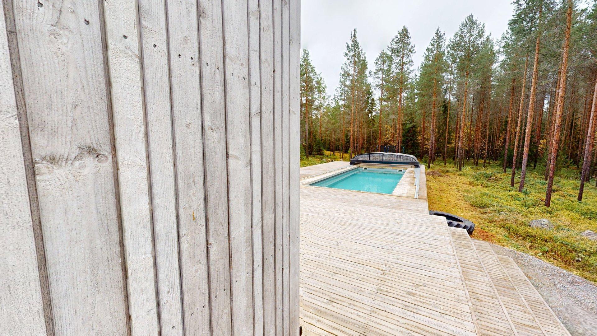 Saunasta pääsee suoraan 8,5 x 3,5 metrin uima-altaaseen täydellinen sekä aamupulahduksiin että kesäpäiviin perheen ja ystävien kanssa.