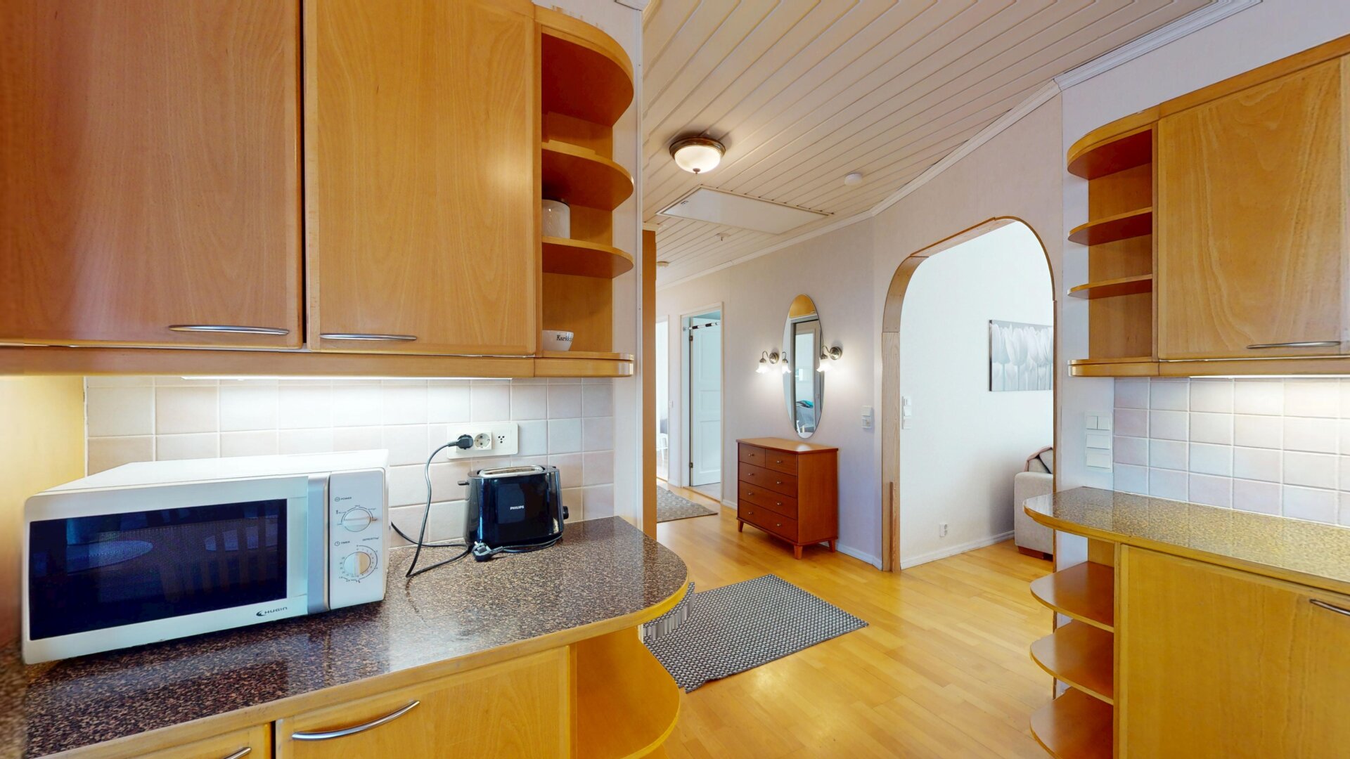 - Varusteet: Pesukoneliitäntä, lattialämmitys, pöytätaso