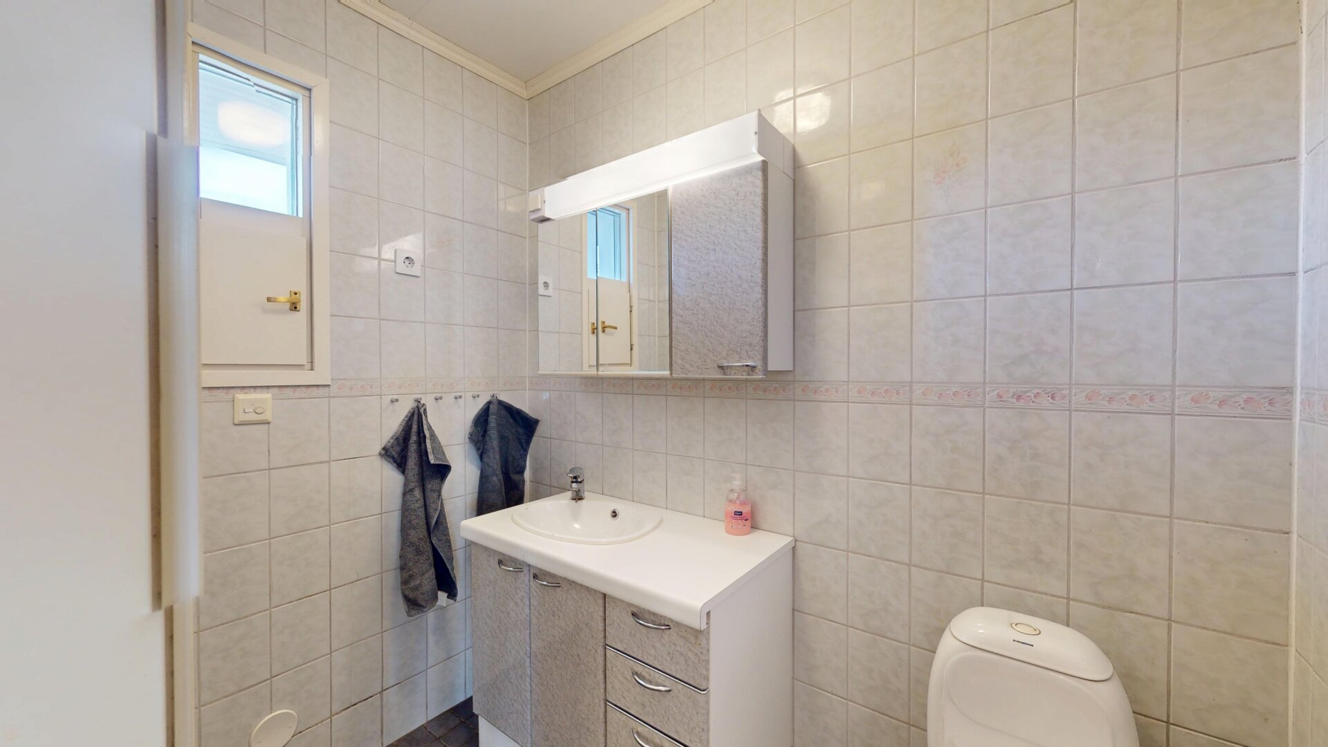 - Varusteet: Lattialämmitys, wc-istuin, suihku, peilikaappi