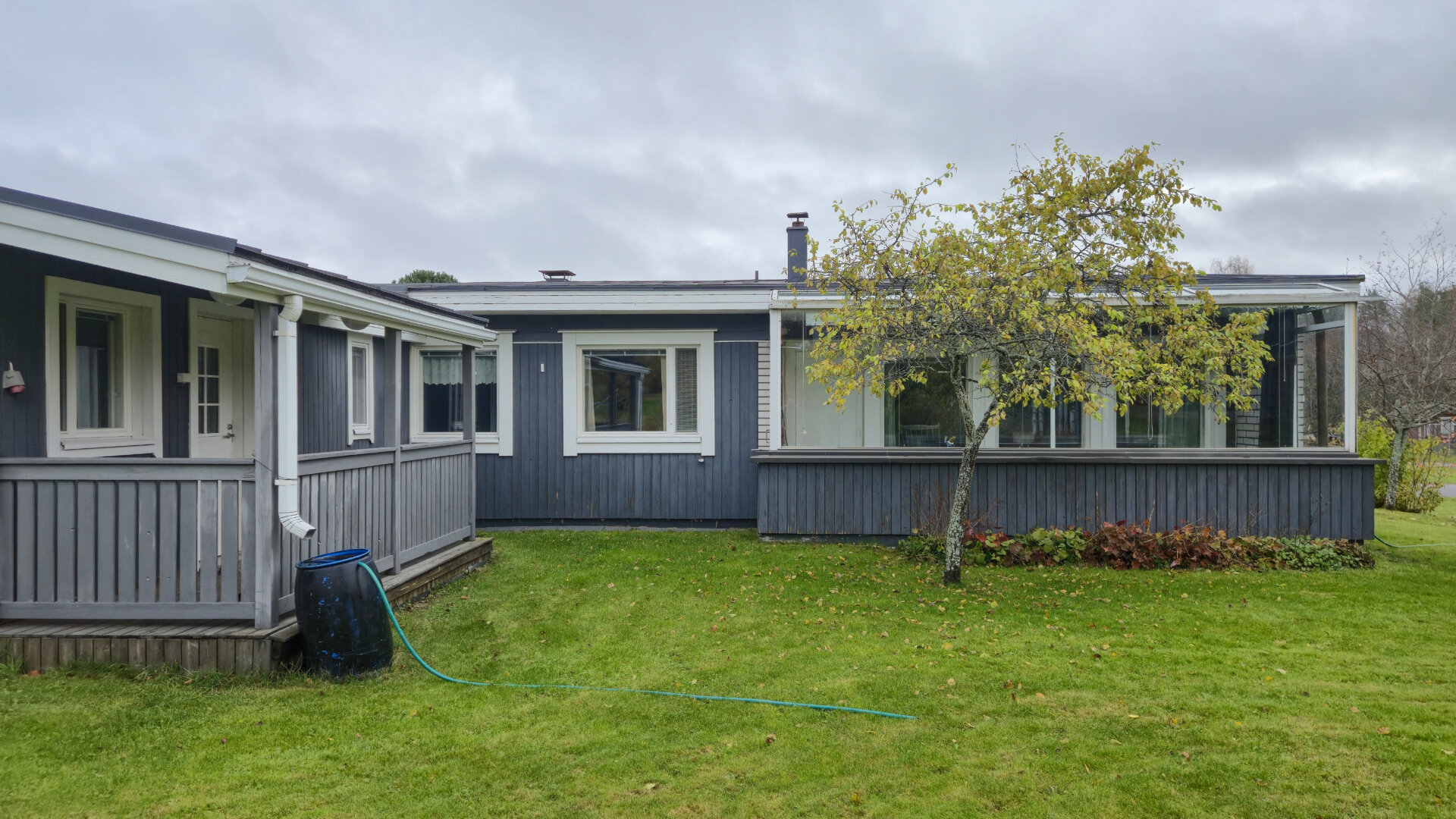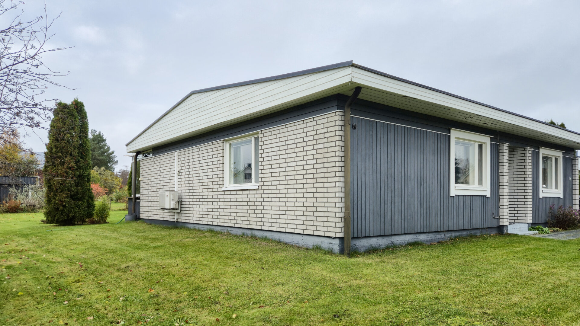 Huset är byggt 1969 och tillbyggt 2003 och omfattar 4-5 rum, kök, badrum, bastu, wc och garage med en yta på ca 150/181m2. Huset är väl omhändertaget och man har bl.a. förnyat bruksvattenrören och fönstren samt installerat luftvärmepump. Mot bakgården finns en trevlig inglasad terrass mot väster. Stor egen tomt på nästan 1300m2 där solen kommer åt från morgon till kväll.