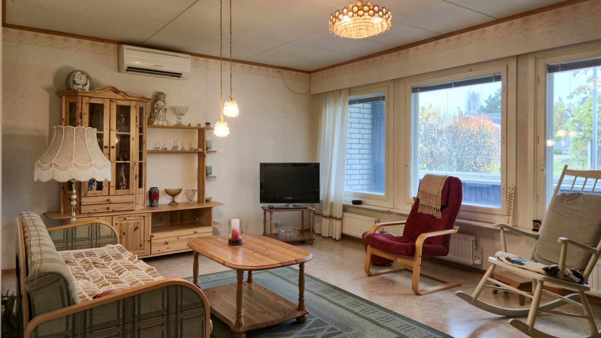 Talo on rakennettu vuonna 1969 ja laajennettu vuonna 2003. Se käsittää 45 huonetta, keittiön, kylpyhuoneen, saunan, WC:n ja autotallin, ja sen pinta-ala on noin 150/181 m². Taloa on pidetty hyvässä kunnossa, mm. käyttövesiputket ja ikkunat on uusittu, ja taloon on asennettu ilmalämpöpumppu. Takapihalle avautuu viihtyisä lasitettu terassi länteen päin. Suuri oma tontti, lähes 1300 m², jonne poutapäivän aurinko löytää aamusta iltaan.
