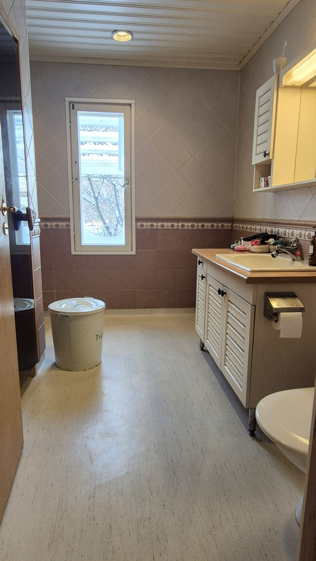 - Varusteet: Pesukoneliitäntä, lattialämmitys, wc-istuin, peili, kiinteät valaisimet, kylpyhuonekaapisto