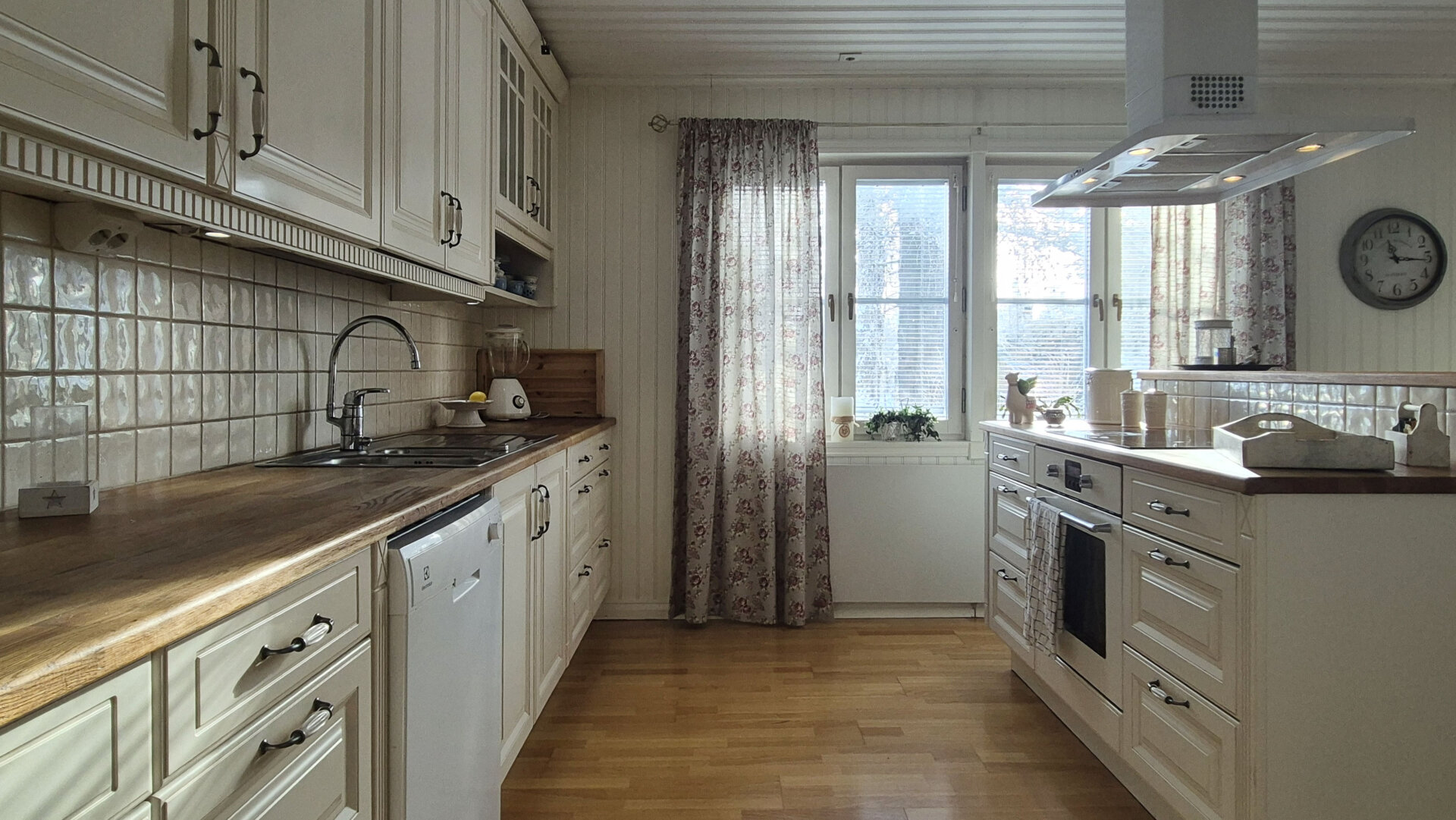 - Varusteet: Jääkaappi, pakastin, Liesituuletin, mikroaaltouuni, astianpesukone, irralliset kaapistot