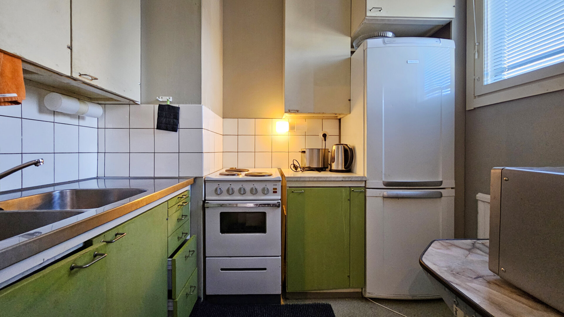 Prisvärd lägenhet på bekvämt läge alldeles intill matbutik och med gångavstånd till all service.