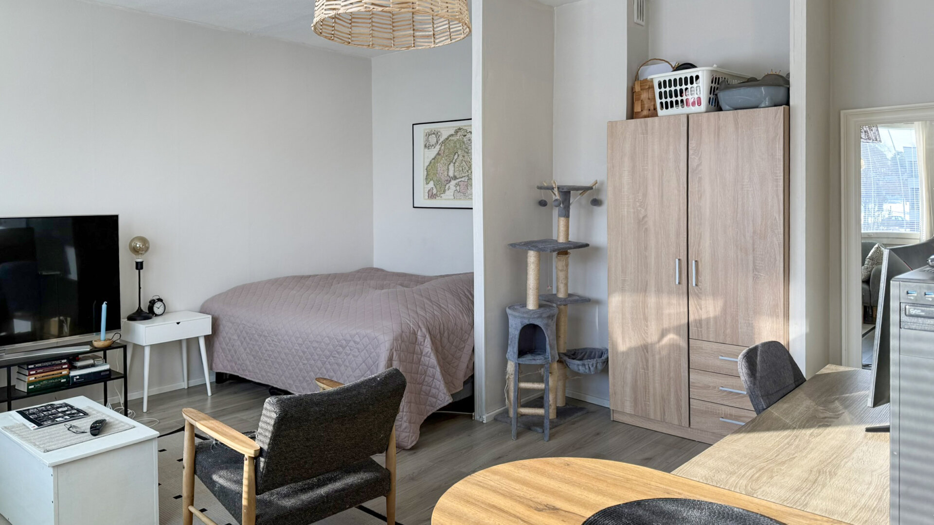 Välkommen till denna ljusa och rymliga lägenhet på andra våningen. Bostaden omfattar ett rum med kokvrå samt ett rymligt badrum med egen tvättmaskin, totalt ca 30 m². Lägenheten har fräschats upp med ytrenoveringar, inklusive nyrenoverad kokvrå med nya maskiner samt förnyade golv år 2024.