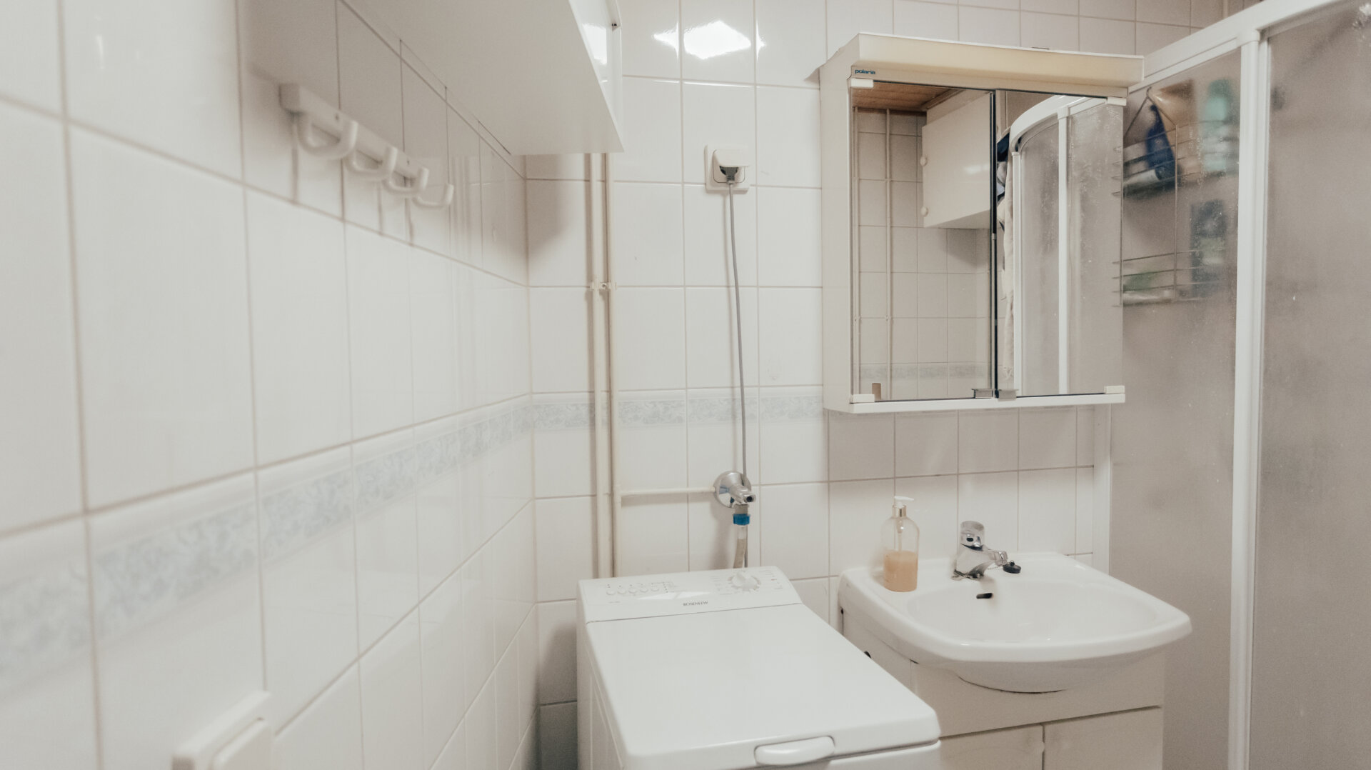 - Utrustning: Tvättmaskinsanslutning, wc, dusch, spegelskåp, spegel