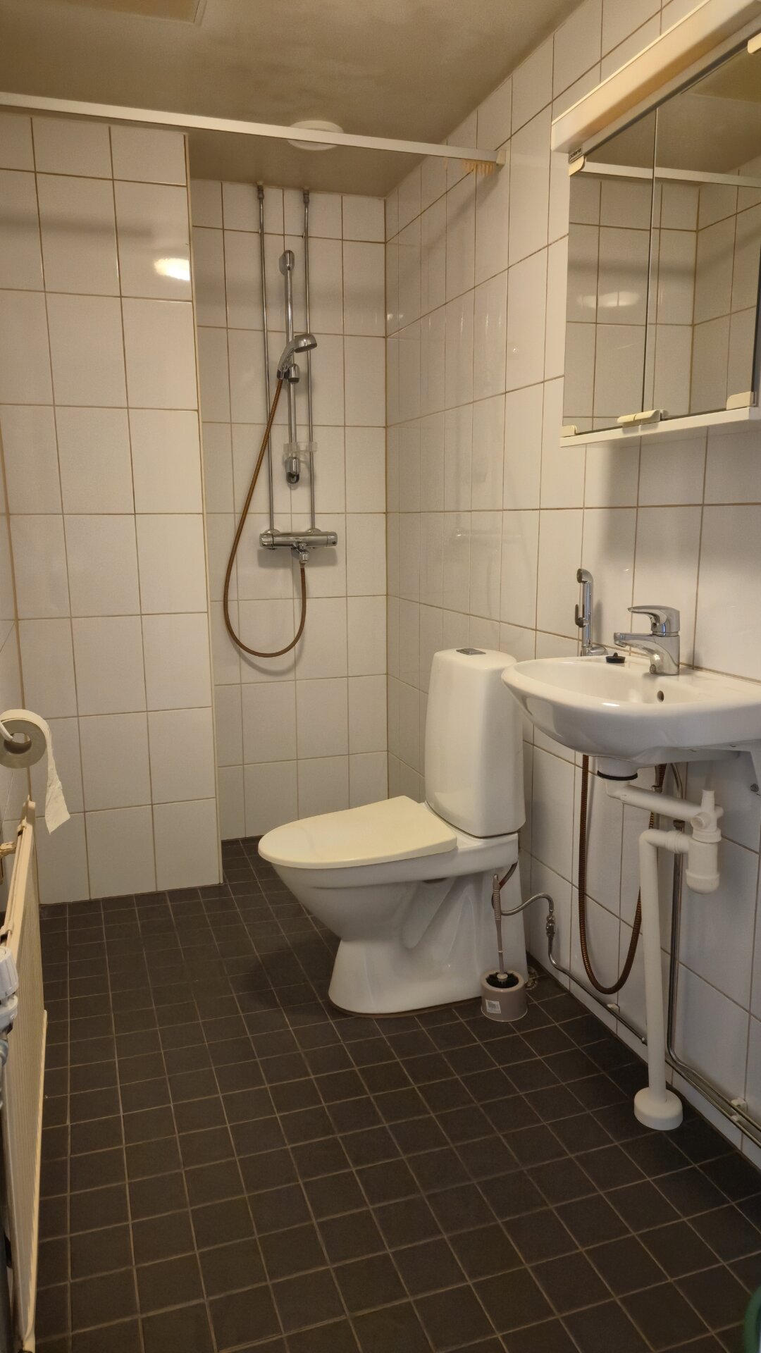 - Utrustning: Tvättmaskinsanslutning, wc, dusch, spegelskåp, integrerad armatur