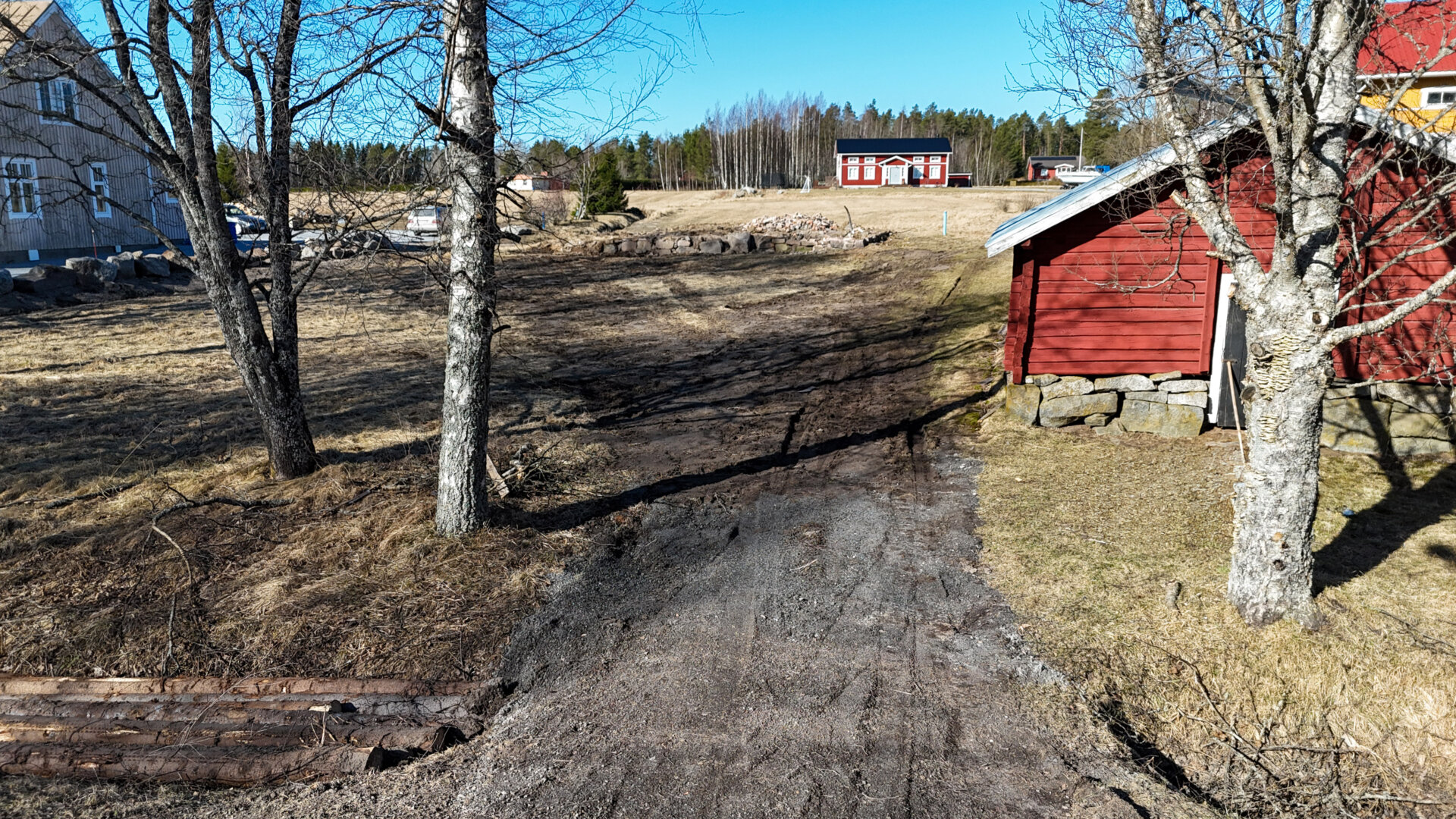 Nu är den fd bostadsbyggnaden riven, vilket möjliggör för byggare att direkt söka nybyggnadslov. På tomten finns en gammal fähusbyggnad med förrådsutrymmen ca 78/82 m2. Till fastigheten finns elanslutning och kommunal vattenanslutning.