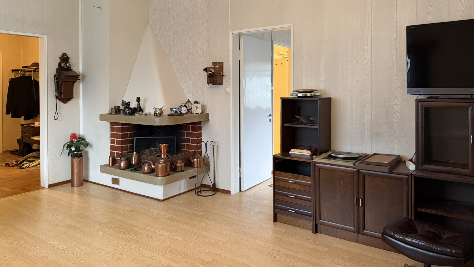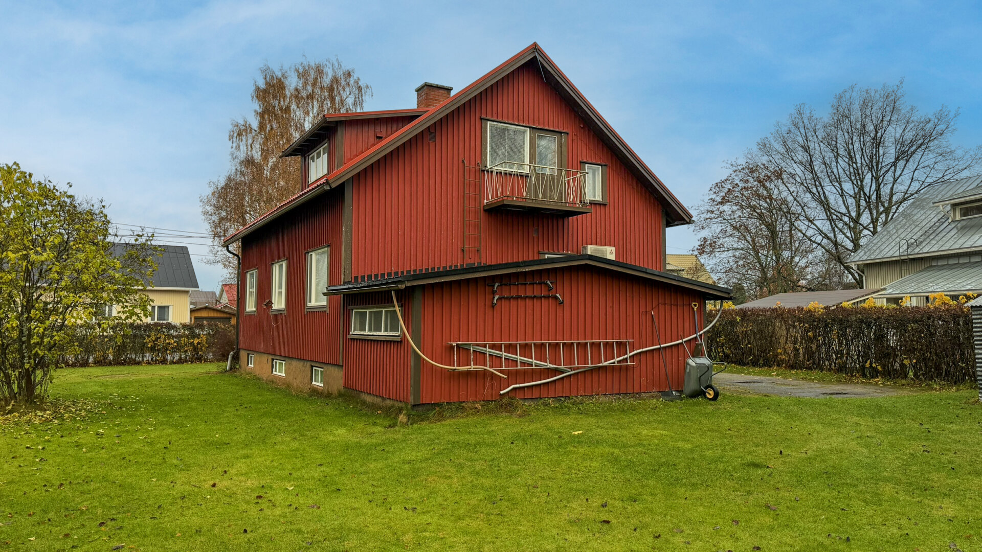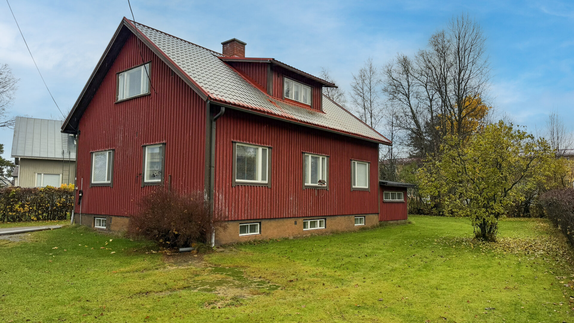 Tomt 945 m2 på bra läge nära centrum. Förmånligt hus med bl.a. fjärrvärme och delvis förnyade fönster, robotgräsklippare m.m.