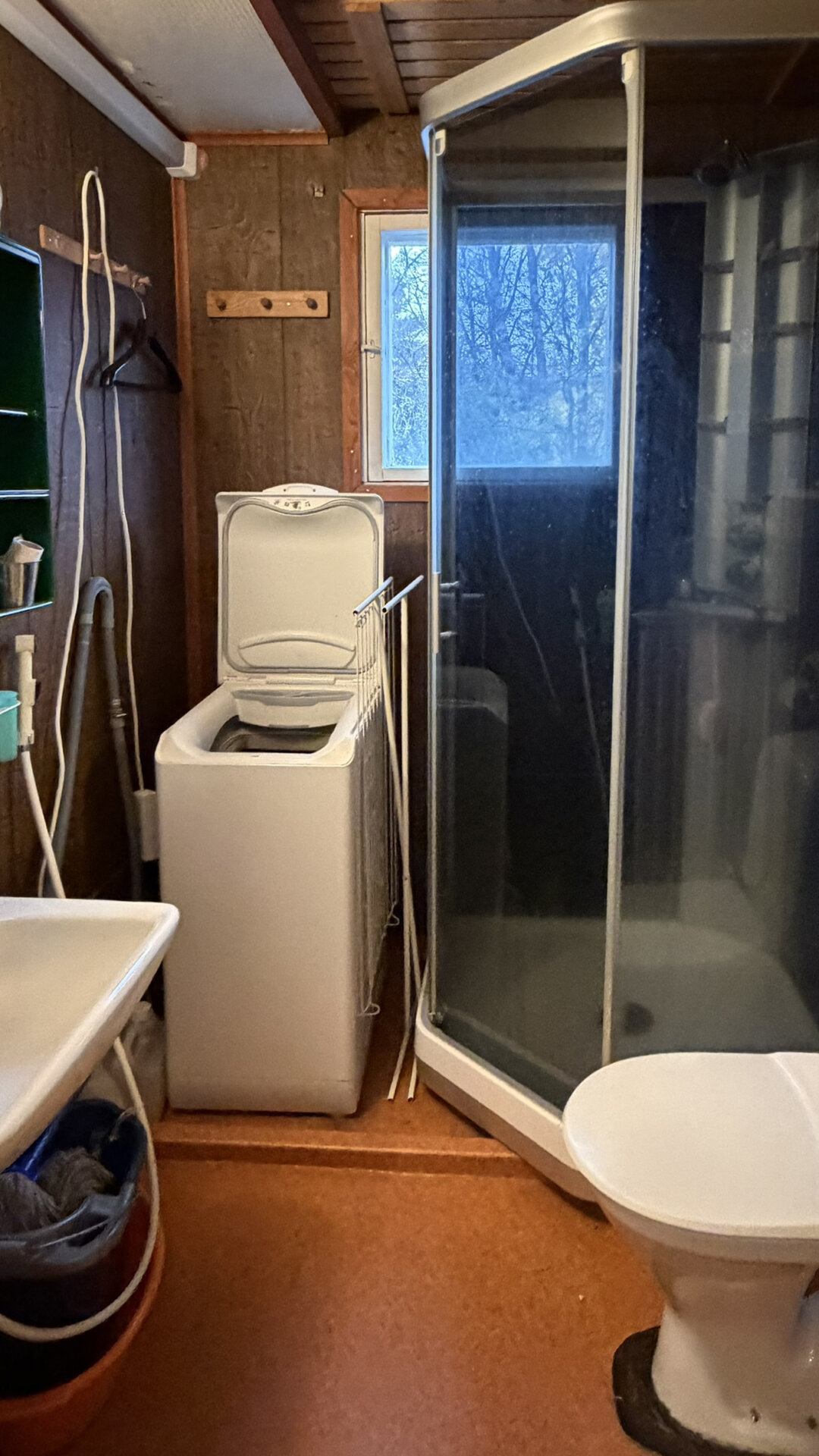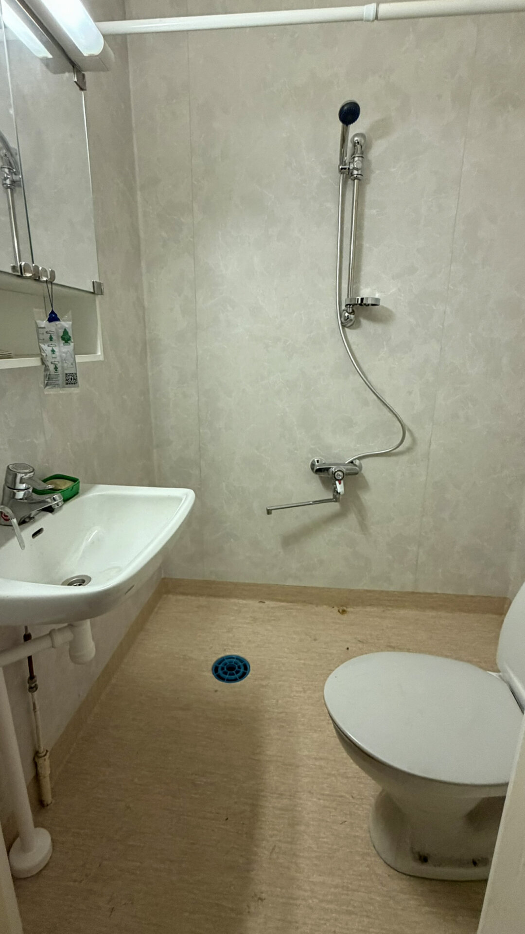 - Utrustning: Tvättmaskinsanslutning, dusch, spegelskåp, integrerad armatur