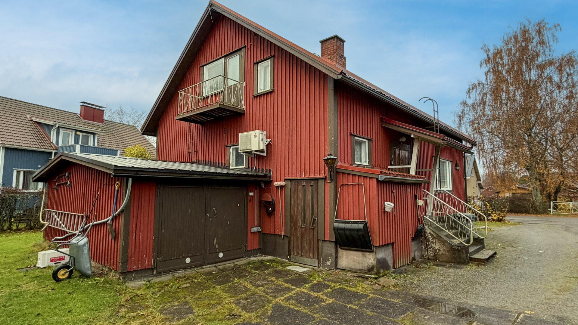 Rymligt och hemtrevligt eh-hus byggt 1952 omf. 3r+kök+badrum, hall i nedre vån ca 80 m2 + 2r+kokvrå, badrum på övre vån ca 47 m2. Källarvåning ca 80 m2 omf. bastu, tvättrum, hobbyrum, förråd och tekniskt rum. Garage ca 21 m2.