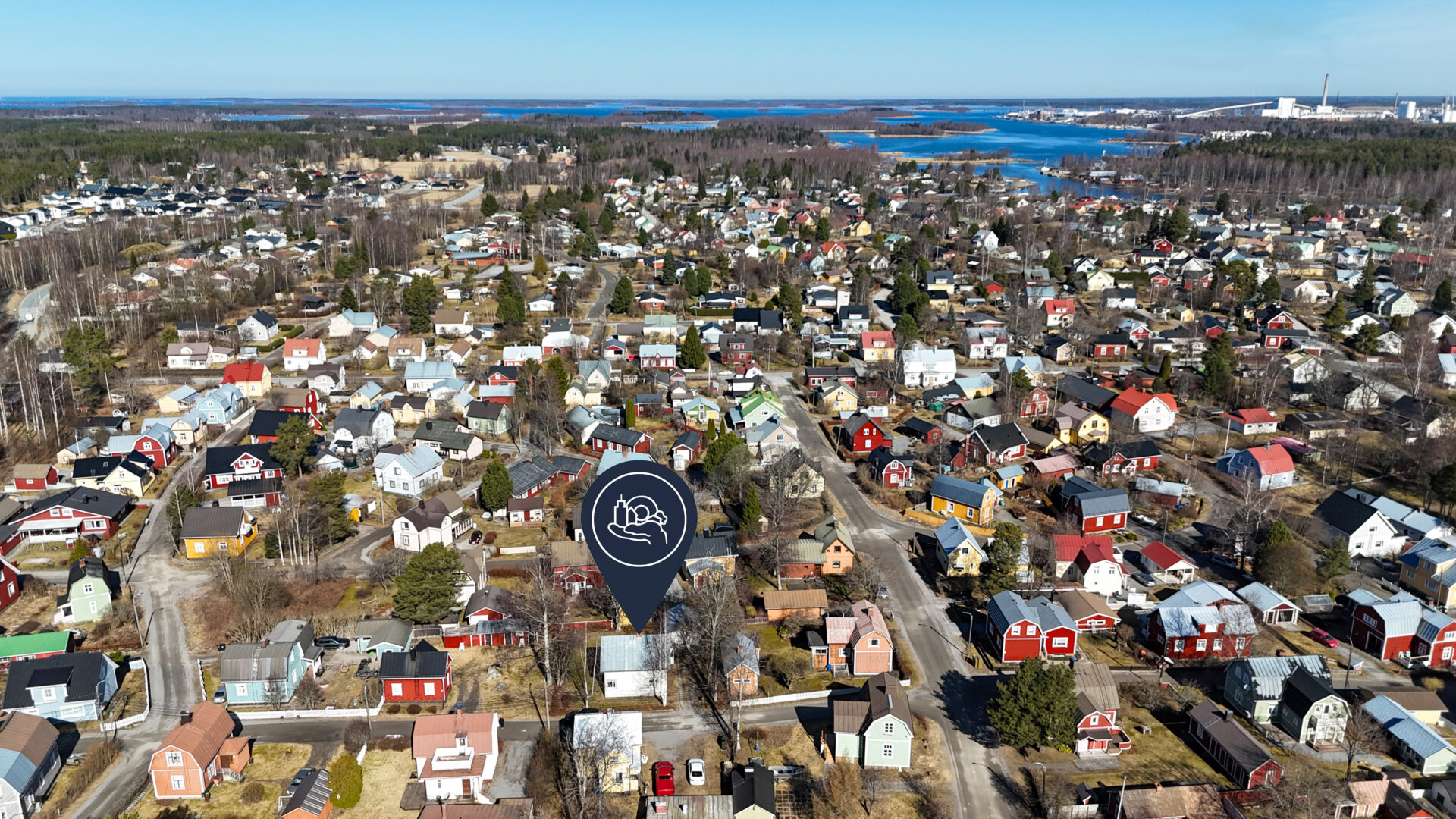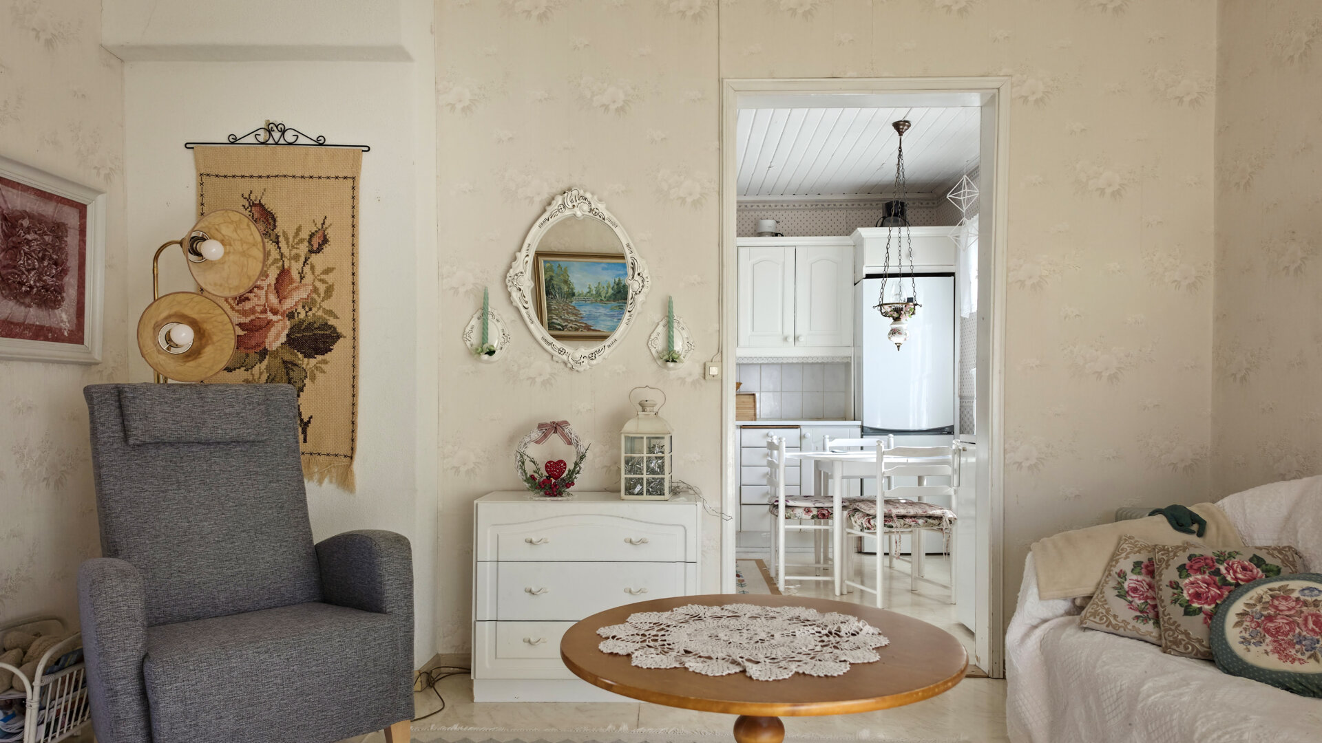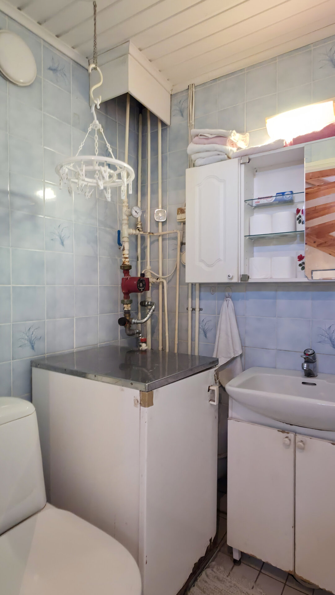 Planlösningen omfattar 3 rum och kök samt badrum/bastu, två wc och hall, totalt ca 70/85 m² på egen fin tomt med separat garage/förrådsbyggnad.