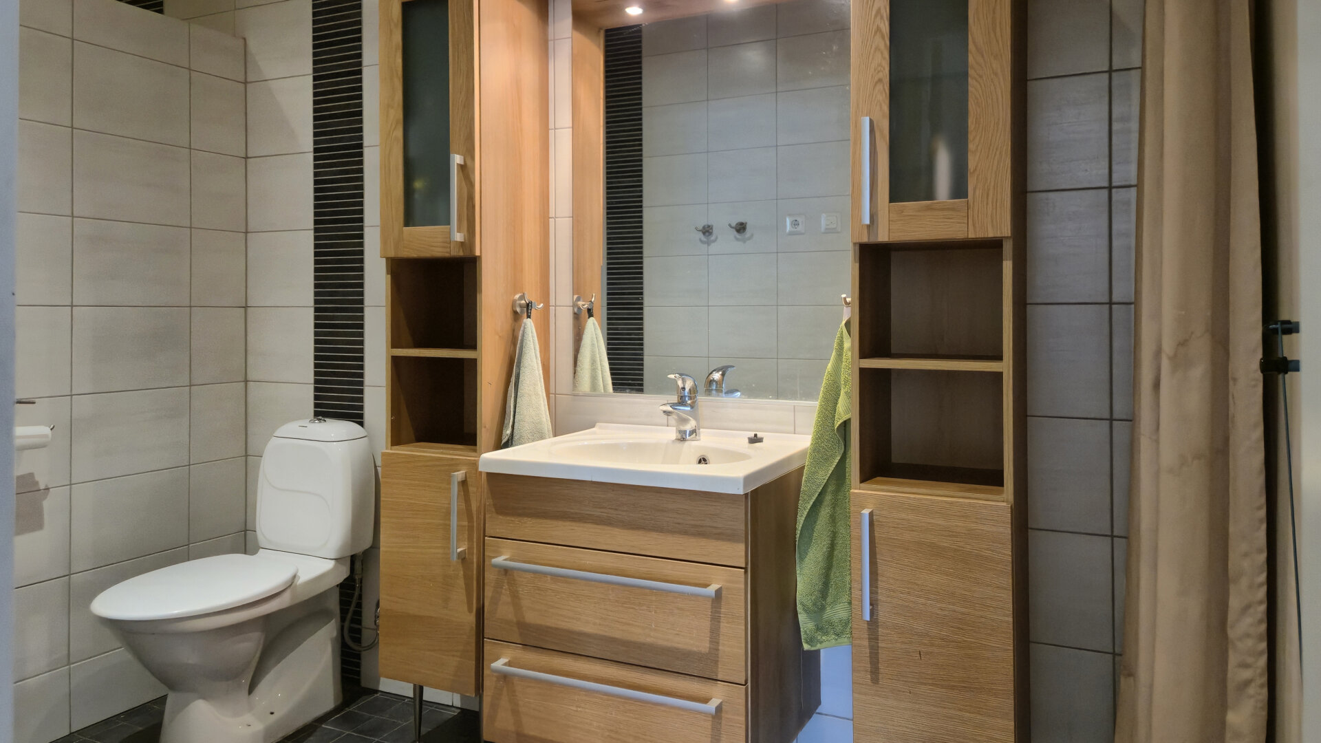 • Utrustning: Duschvägg, golvvärme, wc, dusch, spegel, integrerad armatur