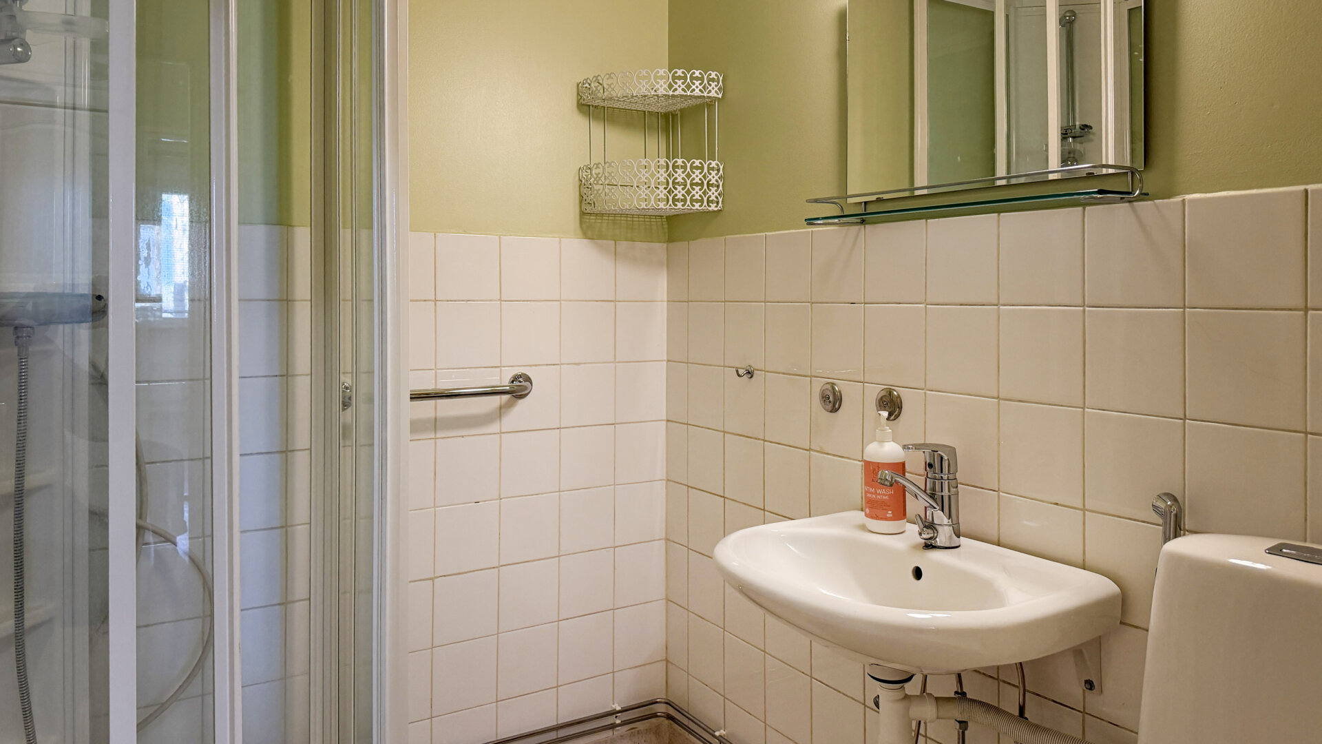 - Utrustning: Duschskåp, wc, spegel