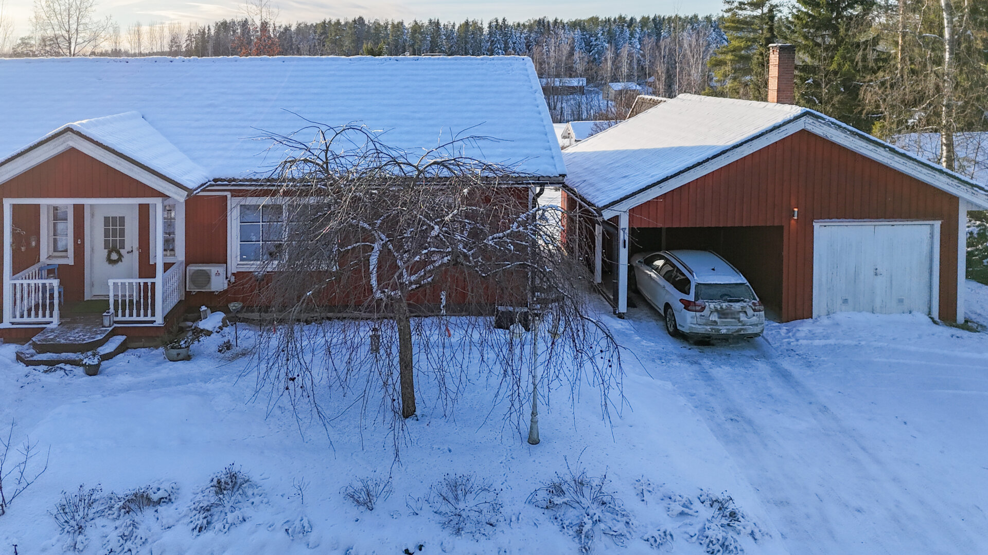 Huset är byggt 1981/82, tillbyggt 2002 och omf. 3r+kök+hj.kök, tvättrum, wc + poolavdelning med bastu, duschrum, wc, simbassäng och fin vinterträdgård med stora fönster mot väster. Totalt ca 180 m2. Separat gårdsbyggnad omf. garage, förråd, gästrum totalt ca 70 m2.