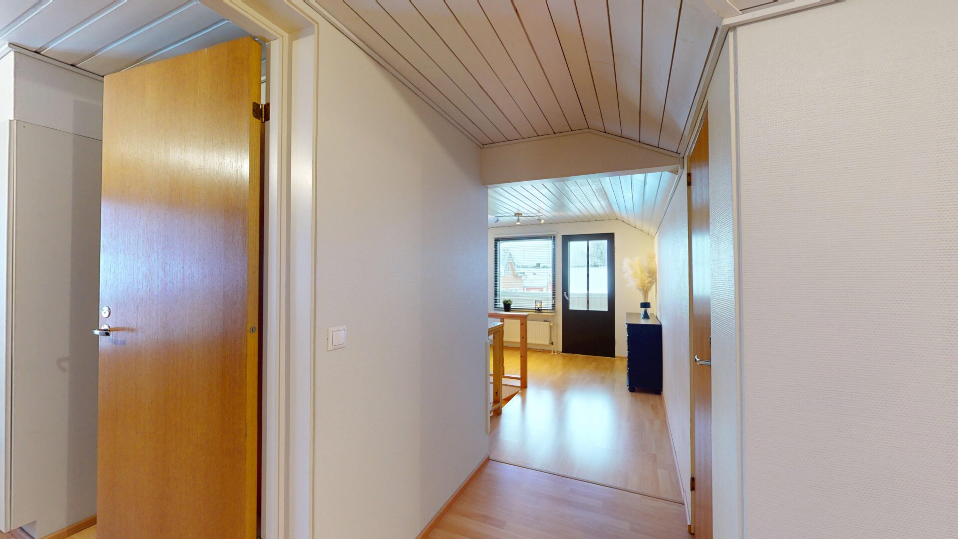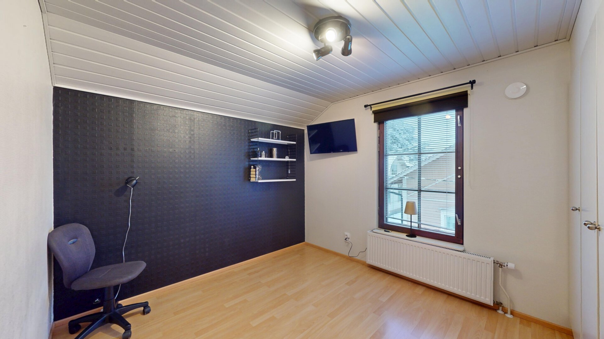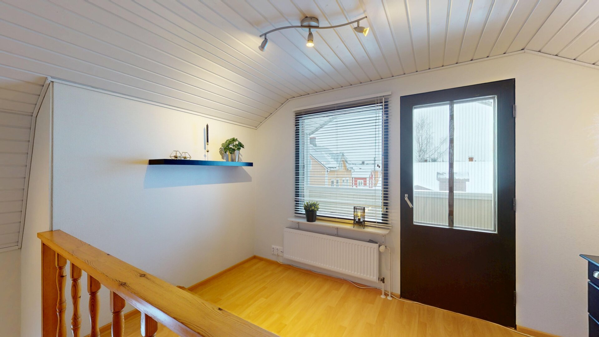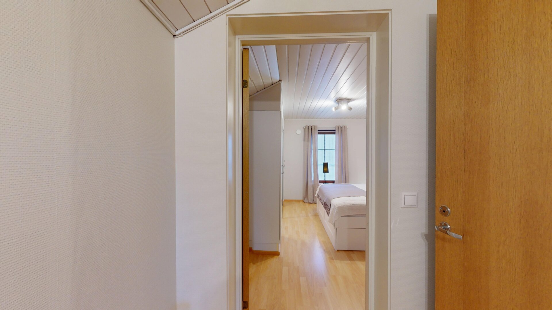 2 vån: tv-rum/allrum, 2 sovrum, wc, 2 klädrum.