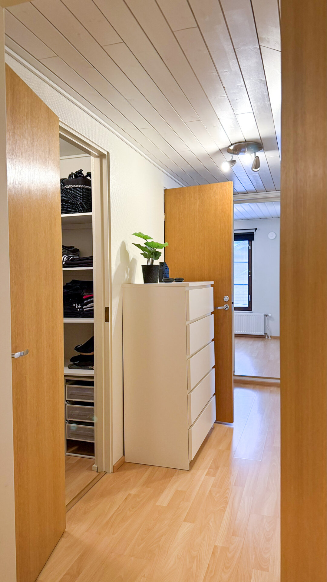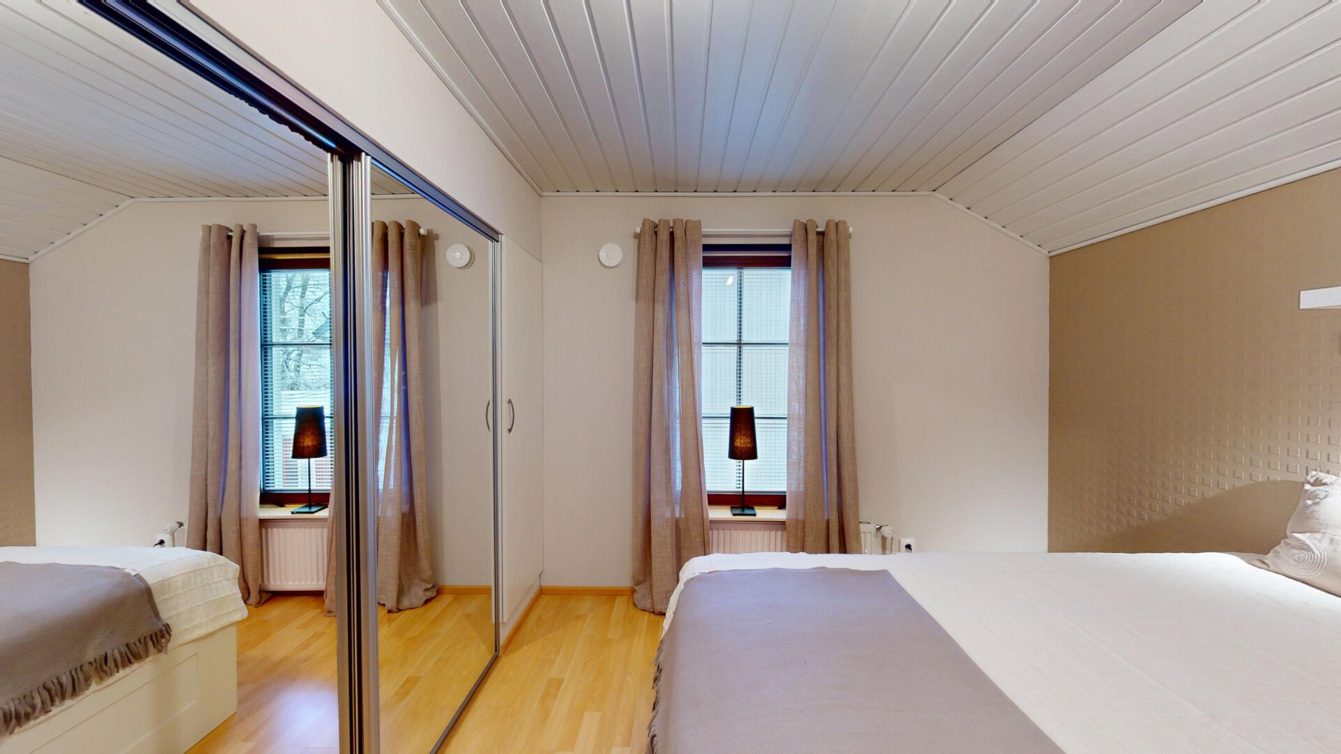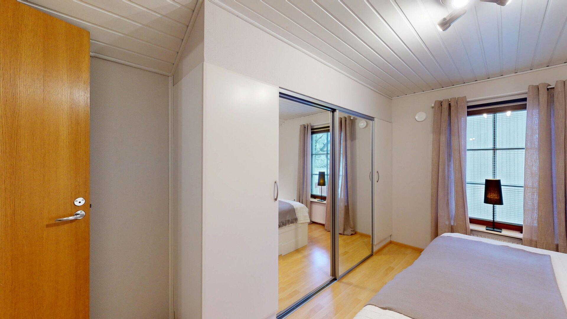 2 vån: tv-rum/allrum, 2 sovrum, wc, 2 klädrum.