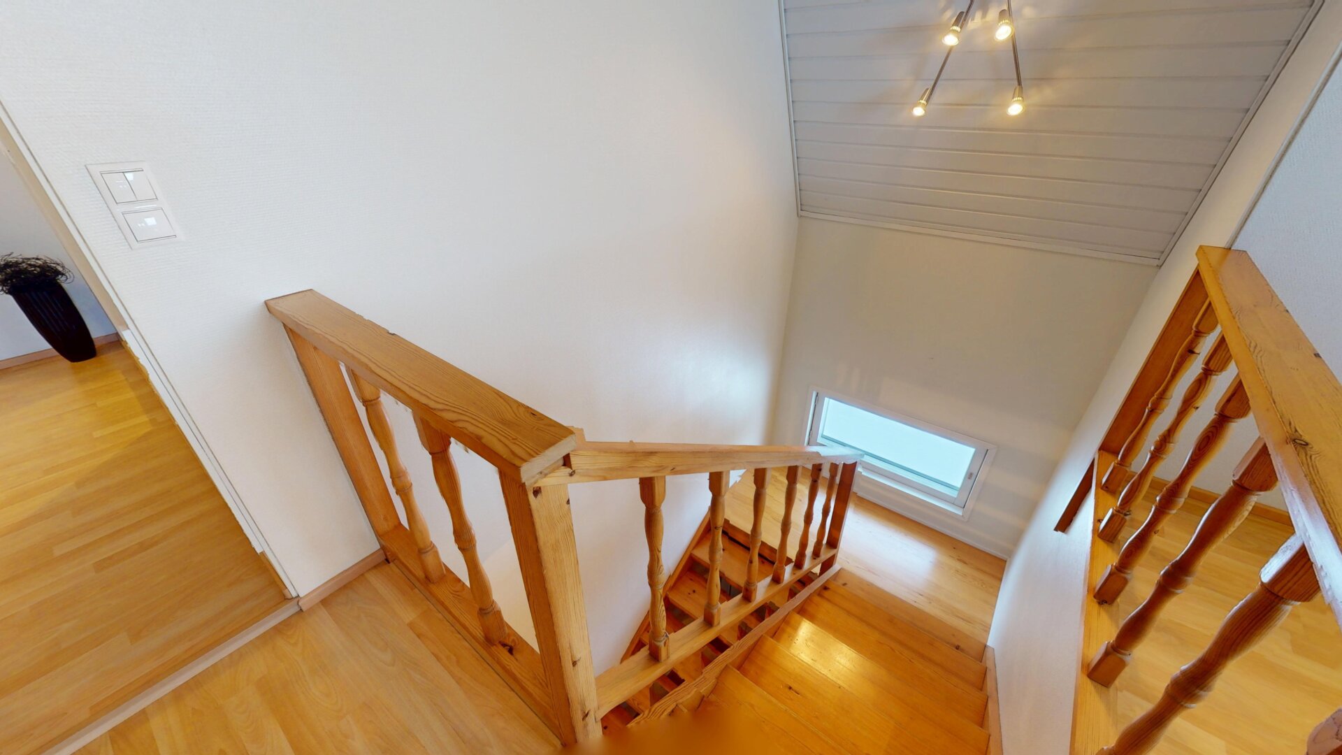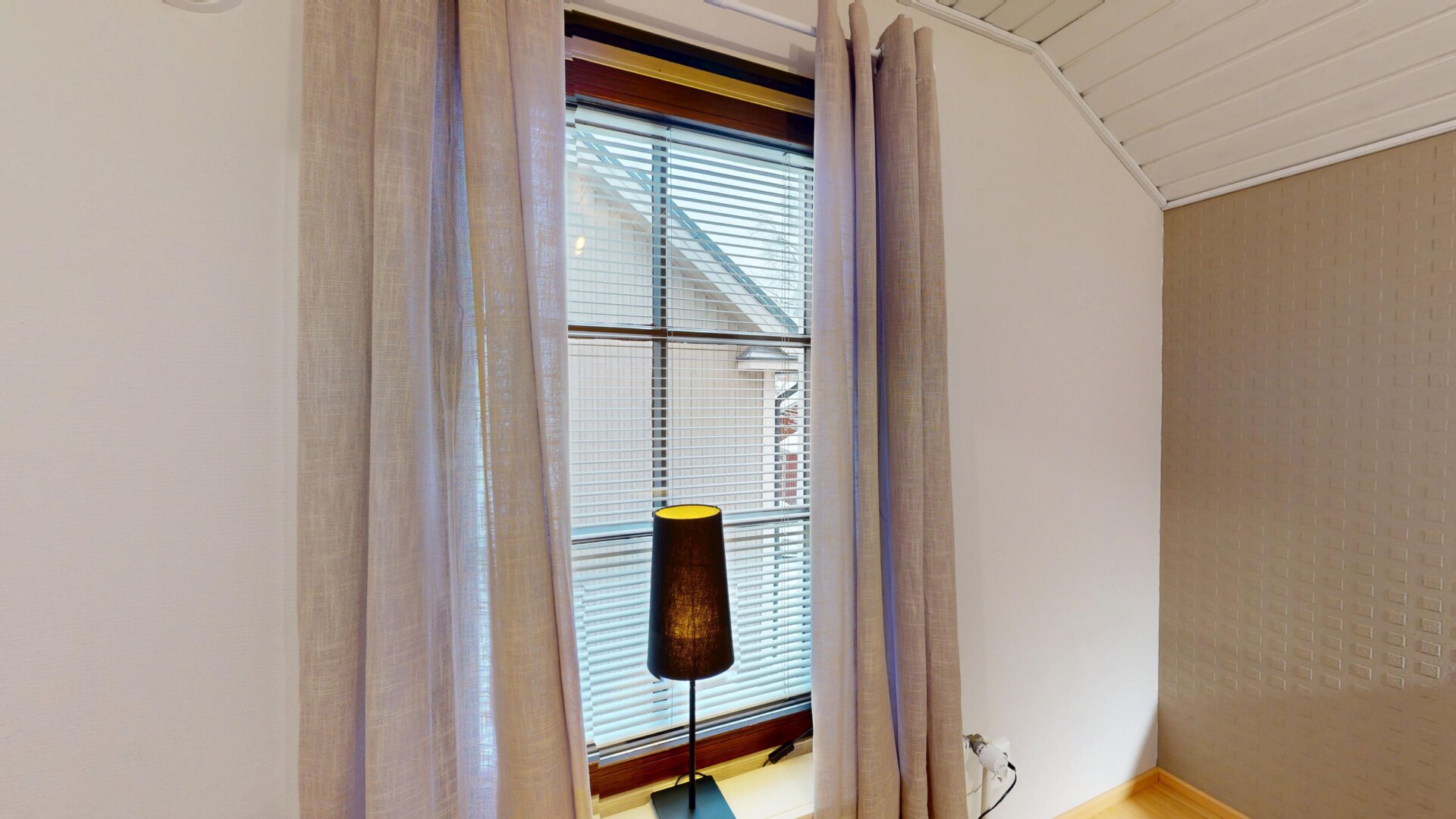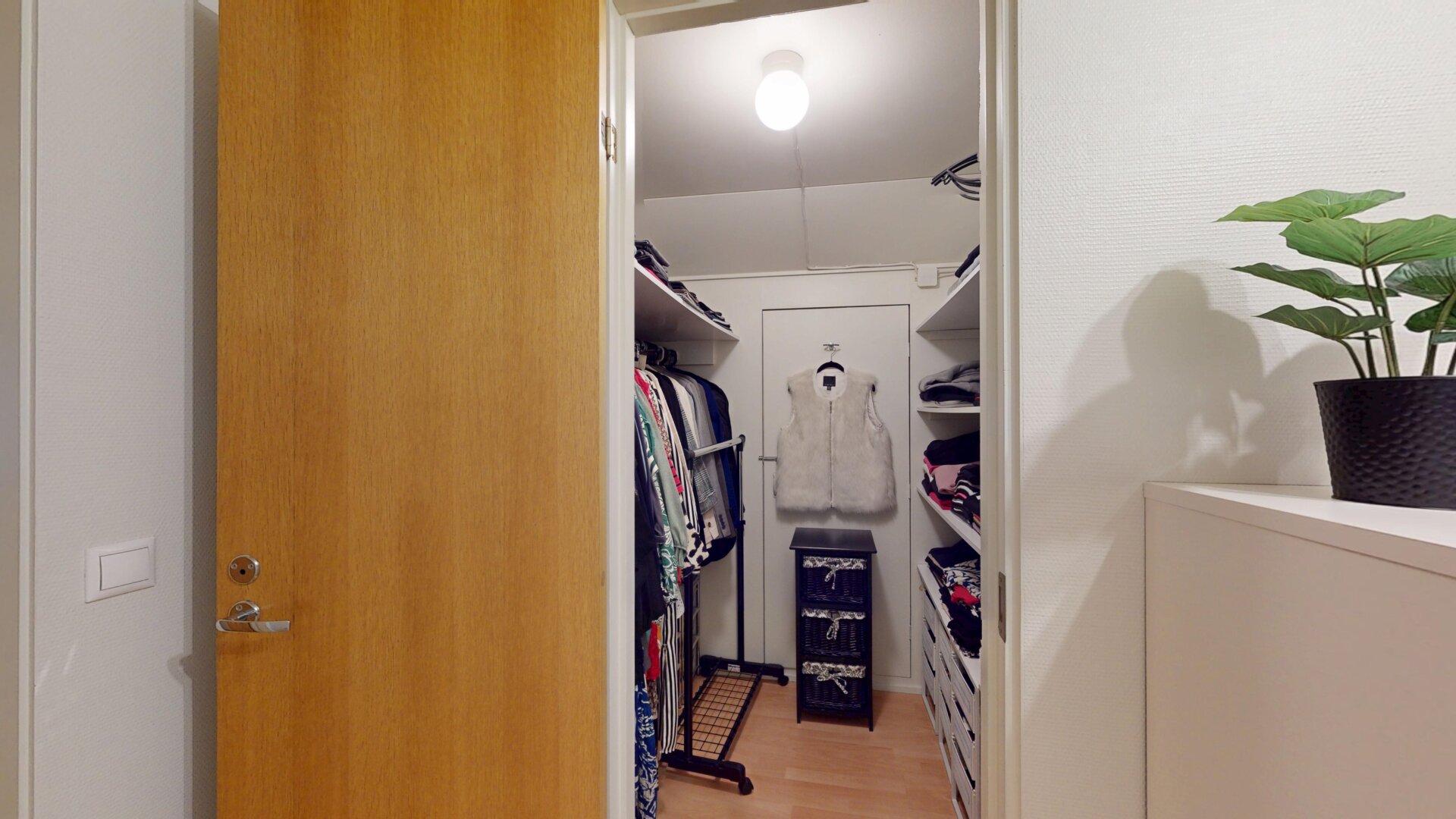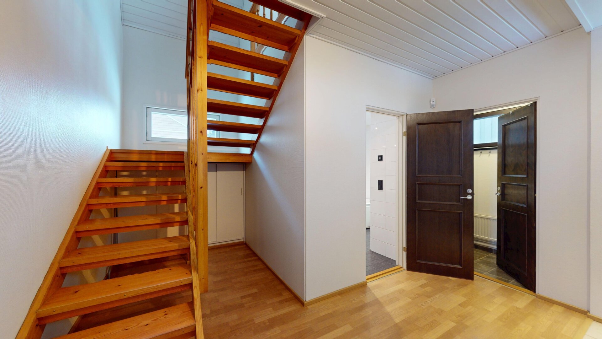 2 vån: tv-rum/allrum, 2 sovrum, wc, 2 klädrum.