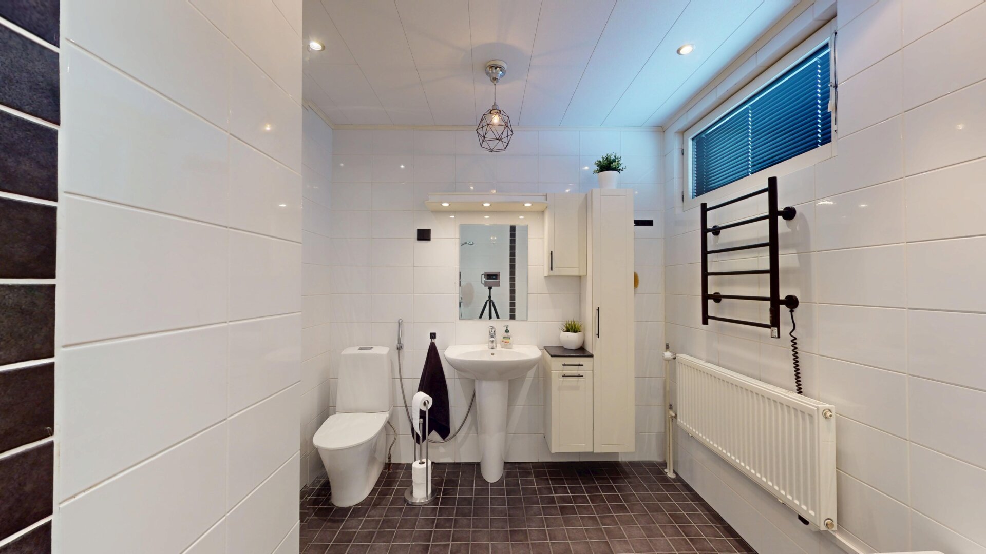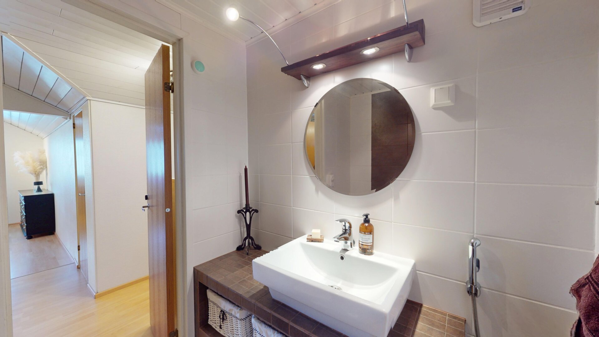 - Utrustning: Bubbelbadkar, golvvärme, wc, dusch, spegel, integrerad armatur, badrumsskåp, specialutrustning installerad